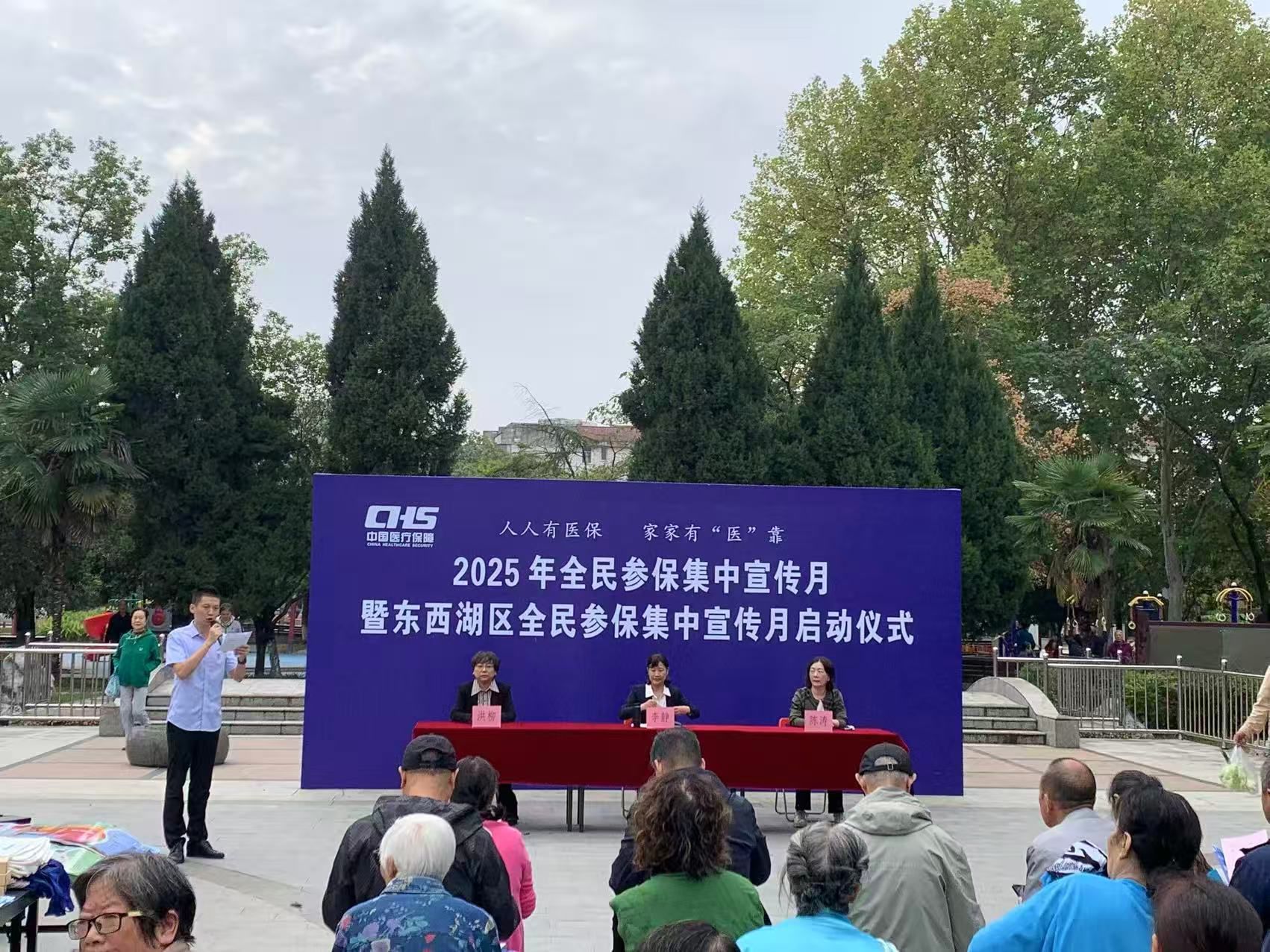 10月16日上午,东西湖区全民参保集中宣传日活动在常青花园三社区法治广场正式启动。本次活动由区医疗保障局联合常青花园社管办共同举办,以“人人有医保,家家有‘医’靠”为主题,通过政策宣讲、现场咨询、互动问答、视频展播和即时参保办理等多元化形式,全面普及医保政策,提升群众参保意识与便利度,吸引近百名社区居民积极参与。