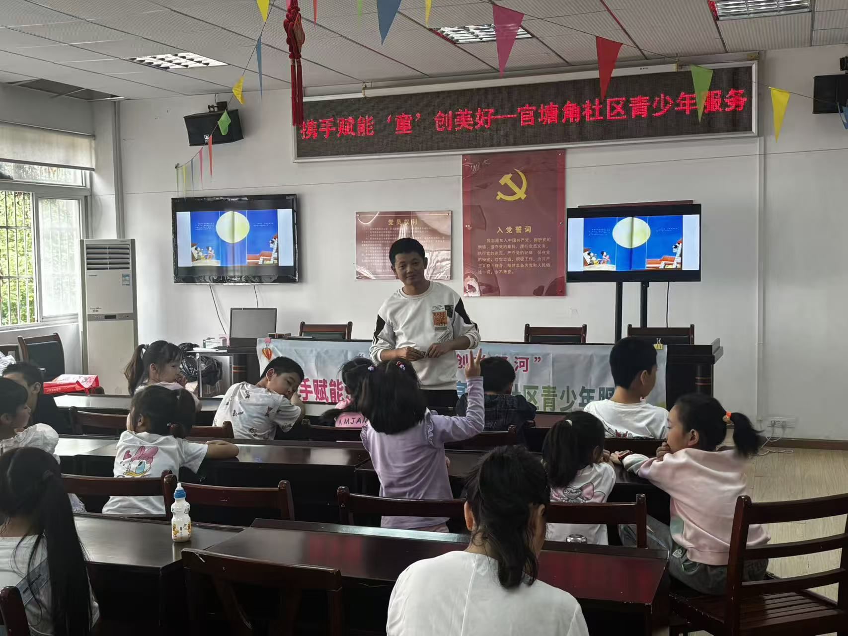 9月27日上午9:30,官塘角社区三楼热闹非凡,径河街道第二届 “汇爱滨水,创益径河” 公益创投项目下的 “携手赋能,‘童’创美好 —— 官塘角社区青少年服务” 活动如期开启。本次活动以 “明月有约,阅见书香” 为主题,通过互动游戏、童书共读、神话分享和亲子手工等形式,为 18组5-10 岁亲子家庭带来了一场兼具趣味与文化韵味的中秋体验。
