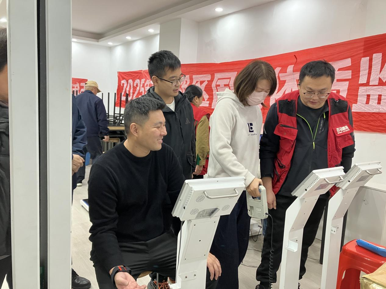 监测现场严格按照国家国民体质监测标准设置测试项目,包括身高、体重、肺活量、握力、反应时、闭眼单脚站立、坐位体前屈、纵跳等。通过这些项目的测试,能够对参与者的身体成分、心血管功能、肌肉力量、平衡能力、柔韧性及身体耐力等进行综合评估。