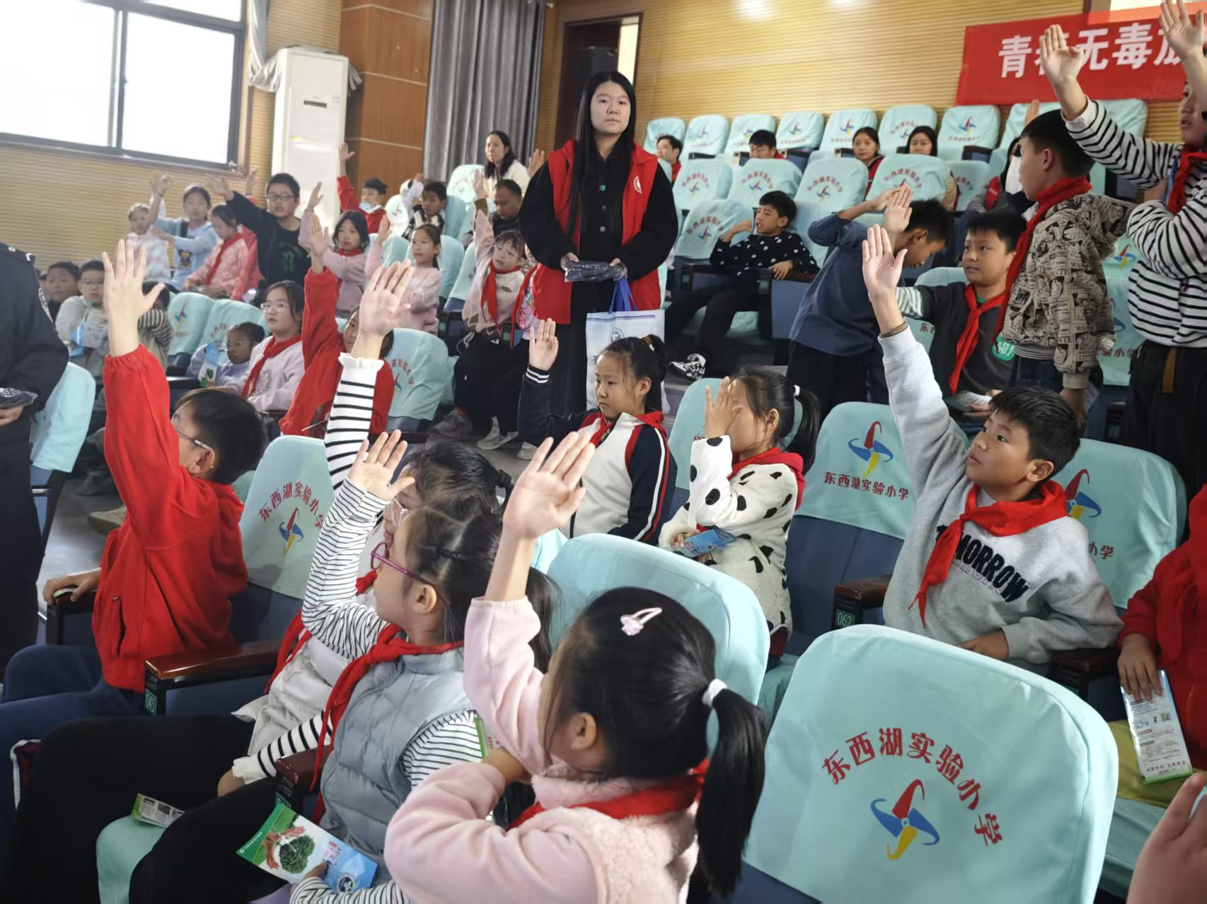 互动体验环节掀起活动热潮。禁毒知识有奖问答环节中,同学们踊跃举手抢答,在轻松的氛围中巩固毒品知识要点;“禁毒游戏识毒挑战”“情景模拟拒绝诱惑”等沉浸式体验项目,让学生们在参与中学会应对毒品诱惑的实用技巧,深化了拒毒决心。活动期间,社区工作人员还向师生们发放了禁毒宣传折页、主题环保袋等物料,进一步延伸宣传效果,累计发放各类宣传资料150余份,解答咨询30余人次。