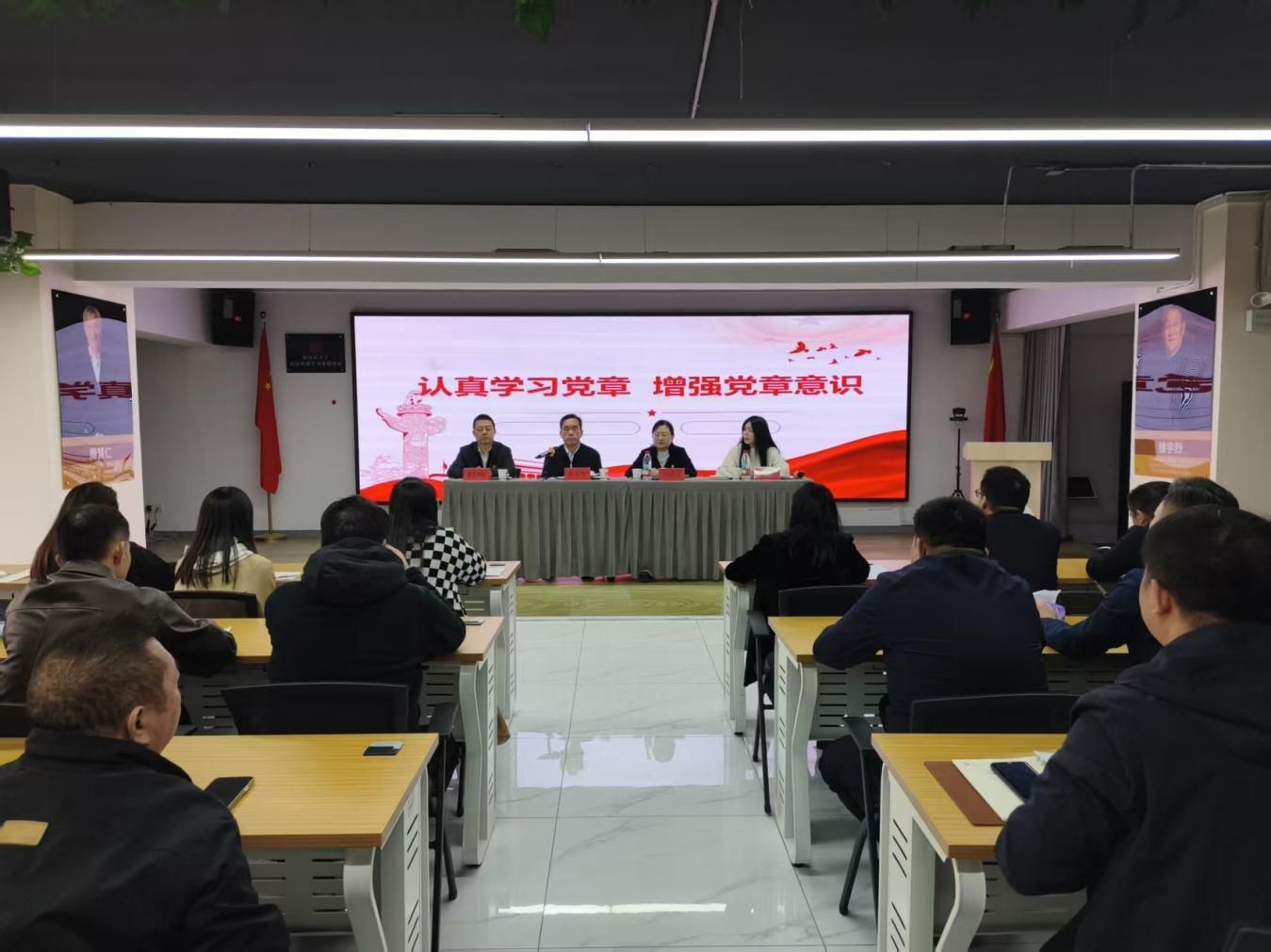 参观结束后,联合支部主题党日活动在武汉临空港人力资源服务产业园正式拉开帷幕。全体党员面向党旗庄严宣誓,重温入党誓词,不仅强化了党员的身份意识与责任意识,更凝聚起携手奋进的思想共识。随后,共同学习《中国共产党章程》《中国共产党纪律处分条例》,夯实纪律与规矩意识。