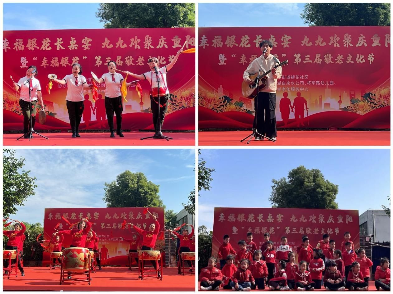 共建单位助演成为亮点:将军路幼儿园小朋友们表演的《孝心到永远》,传承敬老美德;自来水公司的吉他弹唱《当你老了》深情款款,引发共鸣。韵味醇厚的楚剧经典选段也深深吸引了在场的戏迷,展现出中华优秀传统文化的魅力。