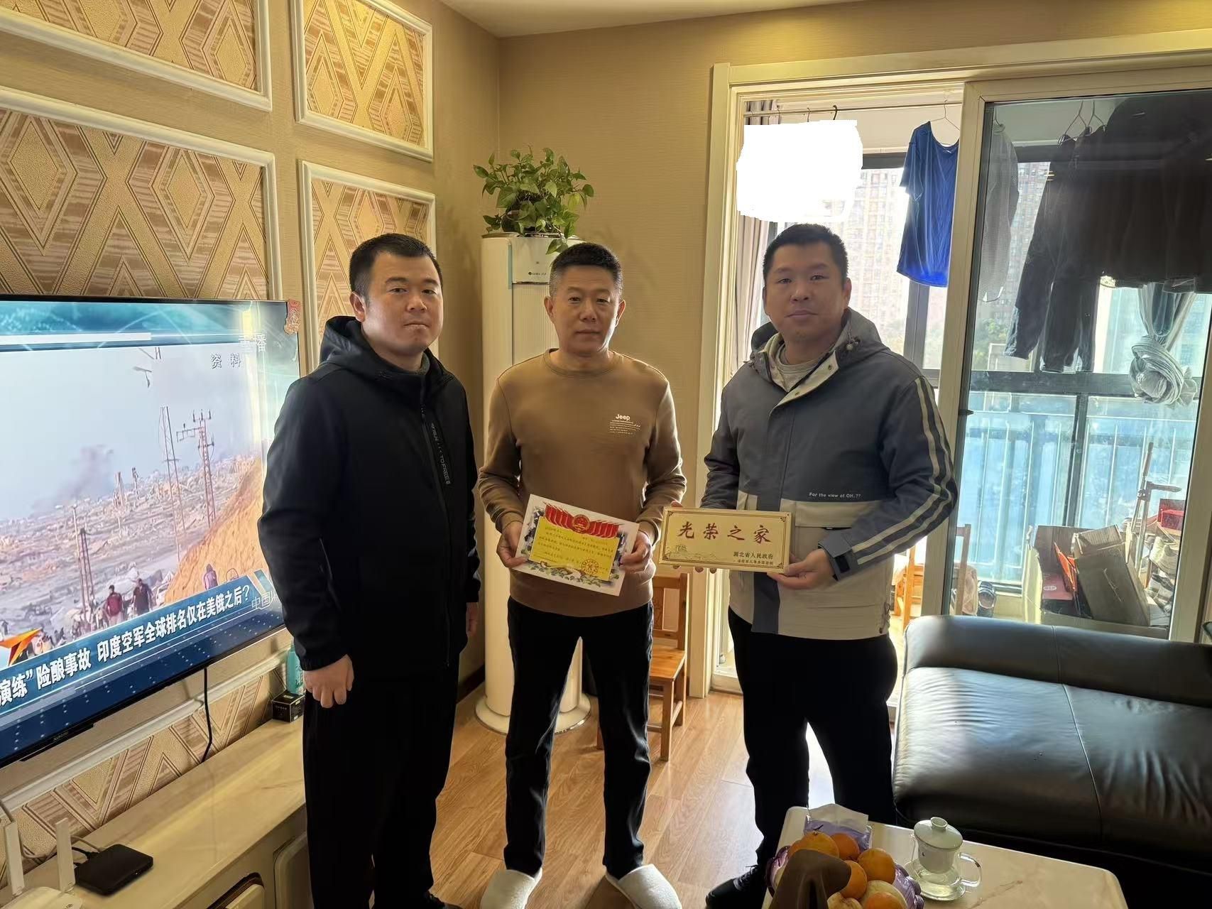 走访过程中,工作人员与新兵家属亲切交谈,细致询问家庭日常起居与实际需求,耐心讲解新兵入伍后的训练计划、生活保障等情况。随后,大家一同将烫金的“光荣之家”牌匾郑重悬挂,现场宣读入伍通知书,并向家属表达祝贺:“孩子投身军营、报效国家,既是家庭的骄傲,也是街道的荣光!我们会全力做好后勤保障,解决你们的后顾之忧,让孩子在部队安心训练、建功立业。”