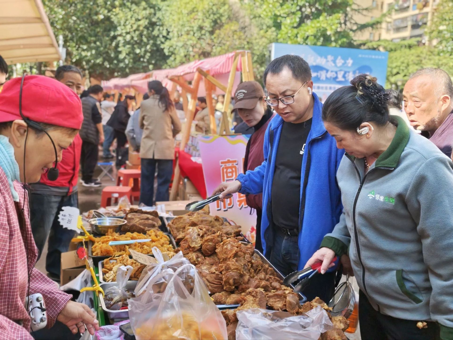 “有点过年赶集的味道了。”看到丰富的展销,辖区居民感慨道。从本地老字号美食到特色农产品,从生活日用品到便民服务,商户们不仅展示优质商品,还提供免费试吃、手工艺教学等互动体验,让居民在轻松愉悦的氛围中增进对社区商业的认同。值得一提的是,众多爱心商户积极参与公益捐赠,通过“销售金额定向捐赠”方式将部分营业额捐入社区公益基金,用于困难群众帮扶、社区治理等公益项目,实现了“居民消费”与“社区公益”的良性循环。