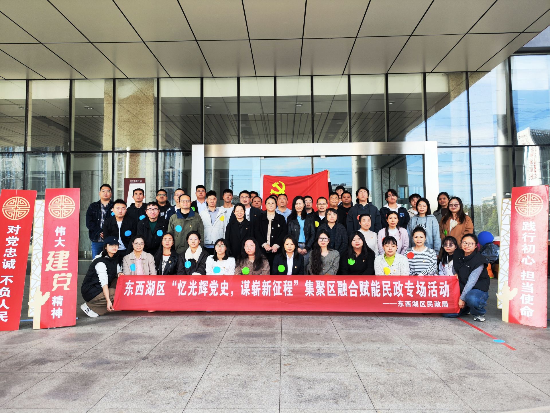为深入贯彻落实新时代党的建设总要求和组织路线,推动“党建红”引领“发展蓝”,激发楼宇、商户与居民之间的联动活力,10月24日下午,将军路街两新组织综合党委联合东西湖区民政局、区社会组织综合党委、将军路经济服务公司、杨柳社区、熊家墩社区、张家墩社区,在武汉客厅共同举办“忆光辉党史 谋崭新征程”主题活动。来自楼宇企业、商户和居民党员的40余名代表齐聚一堂。