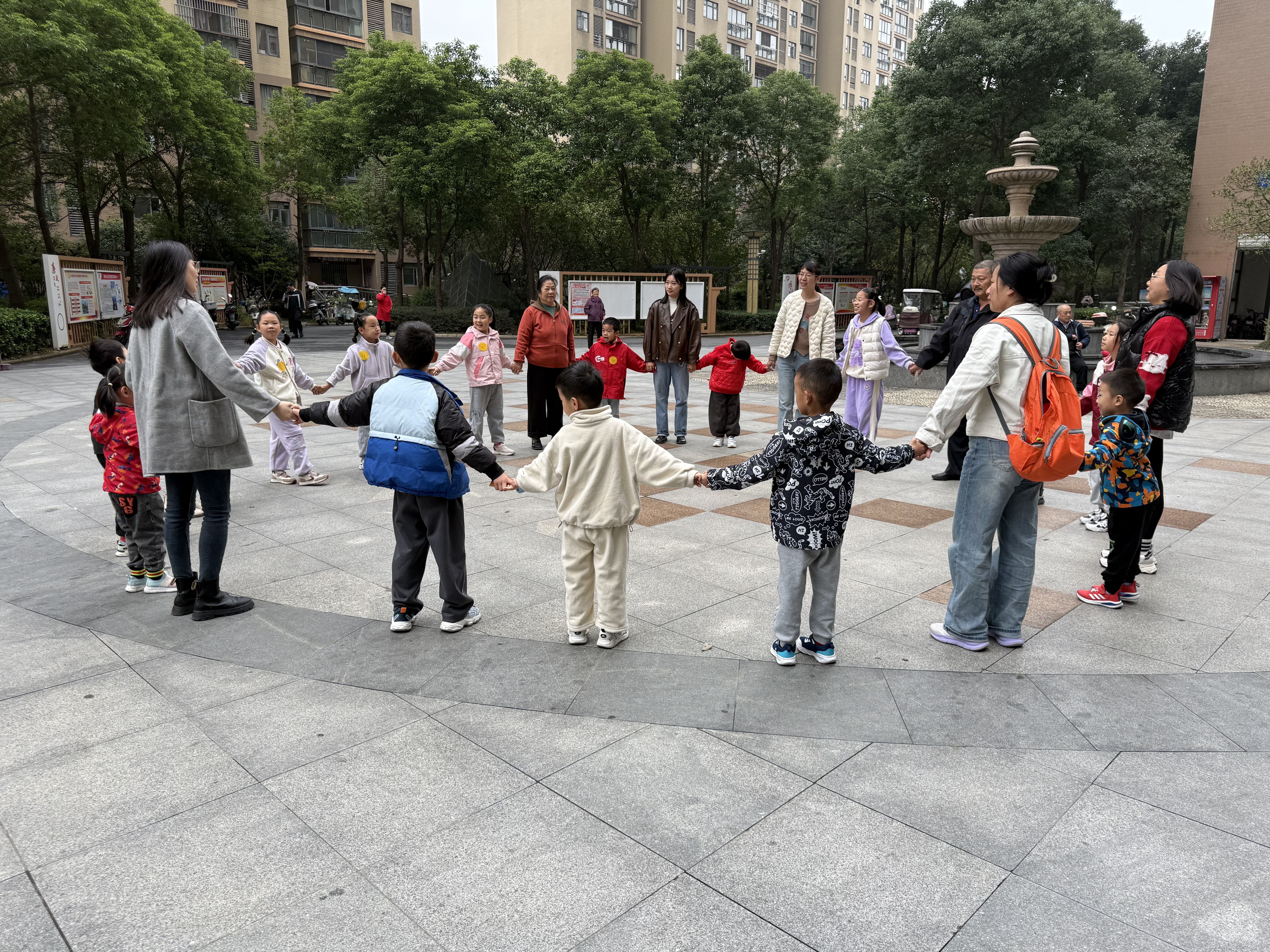 活动开场,一场充满活力与挑战的户外集体游戏“一圈到底”瞬间点燃了现场的热情。各组亲子家庭手牵手围成紧密的圆圈,宛如一个个温暖的小宇宙。随着主持人清脆的指令响起,呼啦圈在人群中欢快地穿梭起来。有的家庭配合默契,以风驰电掣般的节奏迅速完成传递,展现出高效的团队协作能力;有的家庭则在传递过程中不时响起响亮的鼓励口号,“加油,宝贝!”“我们一起努力!”孩子们纯真的笑声和家长们热情的助威声交织在一起,形成了一曲激昂的交响乐。这个游戏就像一把神奇的钥匙,不仅考验着亲子间的协作默契,更让原本陌生的家庭迅速熟悉起来,广场瞬间变成了一个充满活力与欢乐的亲子乐园,为后续的活动奠定了温馨而热烈的互动基调。