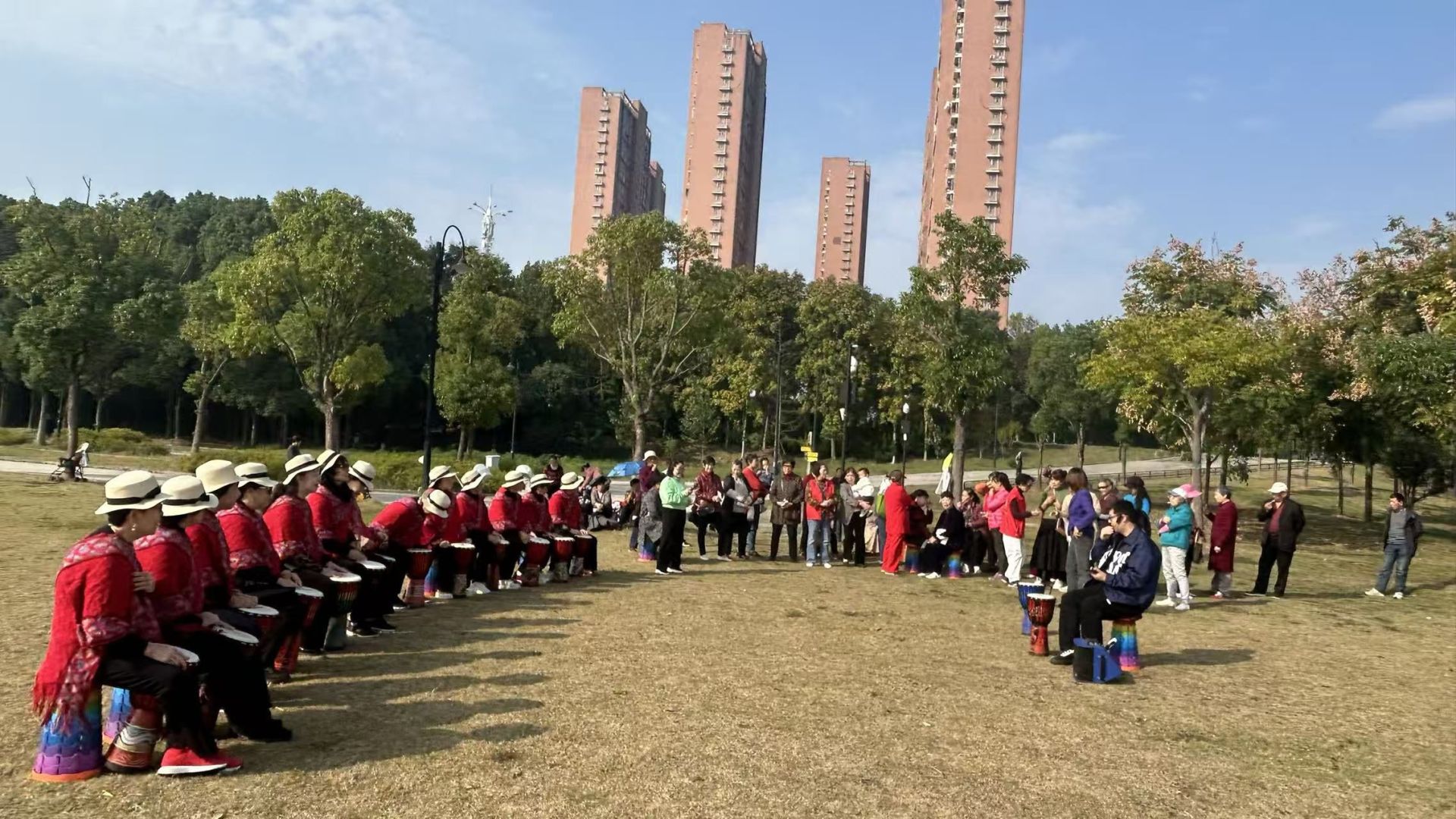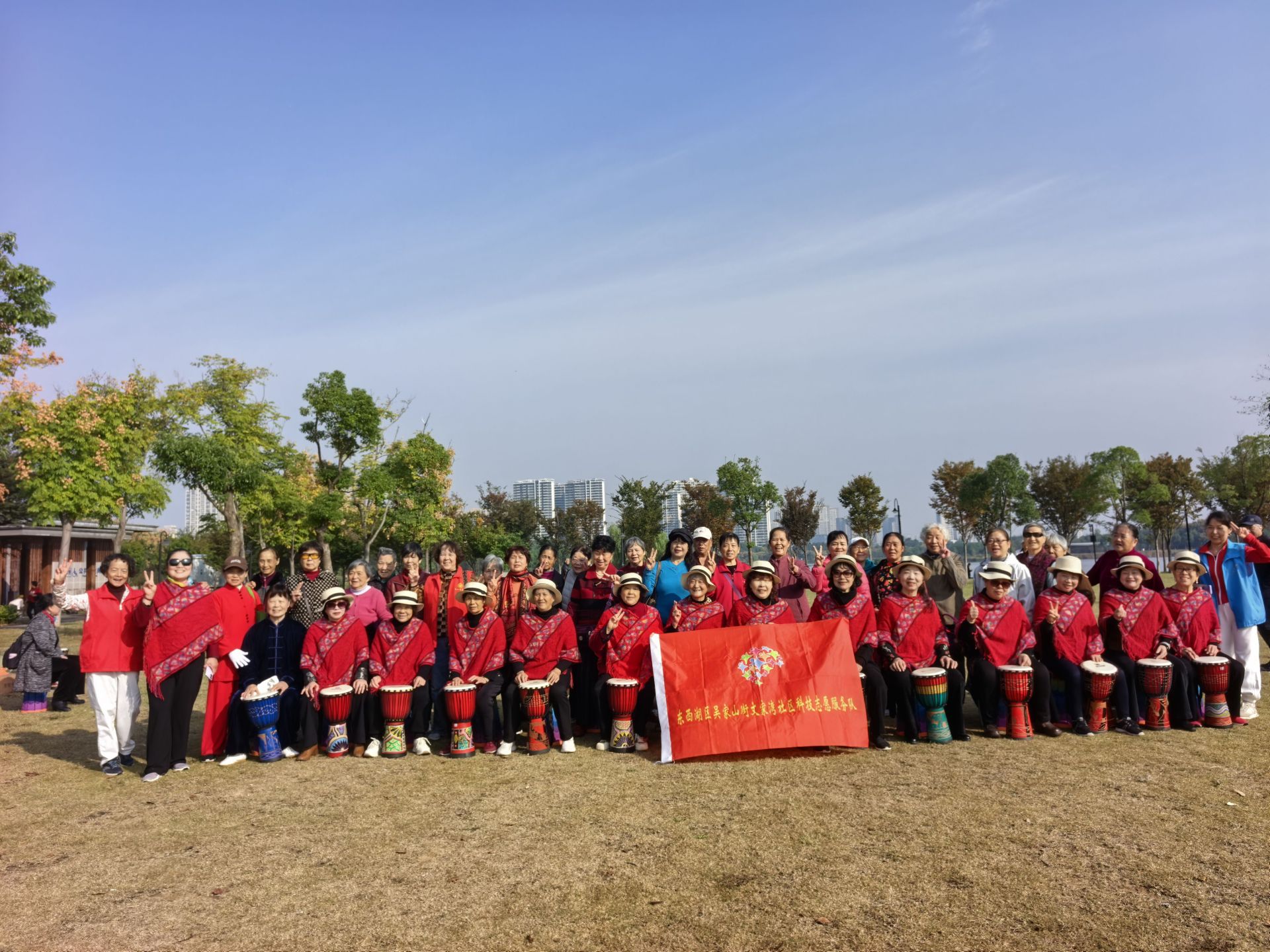 活动分为才艺展演、趣味运动与科普体验三大板块,社区工作人员提前筹备科普资源,让科普内容与节日氛围巧妙融合。在才艺展演环节,非洲鼓表演率先登场,激昂的鼓点、欢快的节奏瞬间点燃现场气氛,老人们手持鼓槌整齐敲击,展现蓬勃生命力;随后,社区合唱队以一曲《我和我的祖国》献礼重阳,悠扬歌声中,工作人员同步向现场老人发放《老年健康科普手册》,手册涵盖秋冬养生、常见疾病预防、合理用药等实用知识,将节日祝福与科普内容一同传递,充分诠释 “老有所学、老有所乐、老有所享” 的风采。