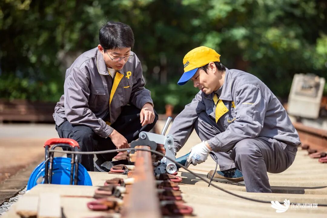 铁路轨道焊接后,内侧焊缝的打磨,以前完全依赖技术工人手感。“普通角磨机重一点、轻一点,就可能在焊缝上留下安全隐患。”技术主管杨康介绍,溢流飞边仿形修磨机可便携作业,下端卡上钢轨,打磨头就能贴合轨道焊缝边缘,进行标准化打磨。