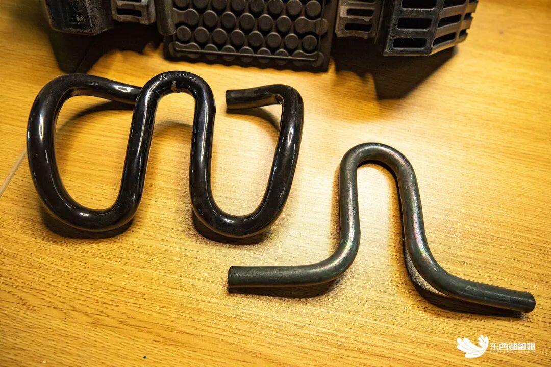 经历加热、折弯后,通红炽热的π形坯件转入淬火炉,历经回火、冷却、喷涂,一枚FC成品就此下线。