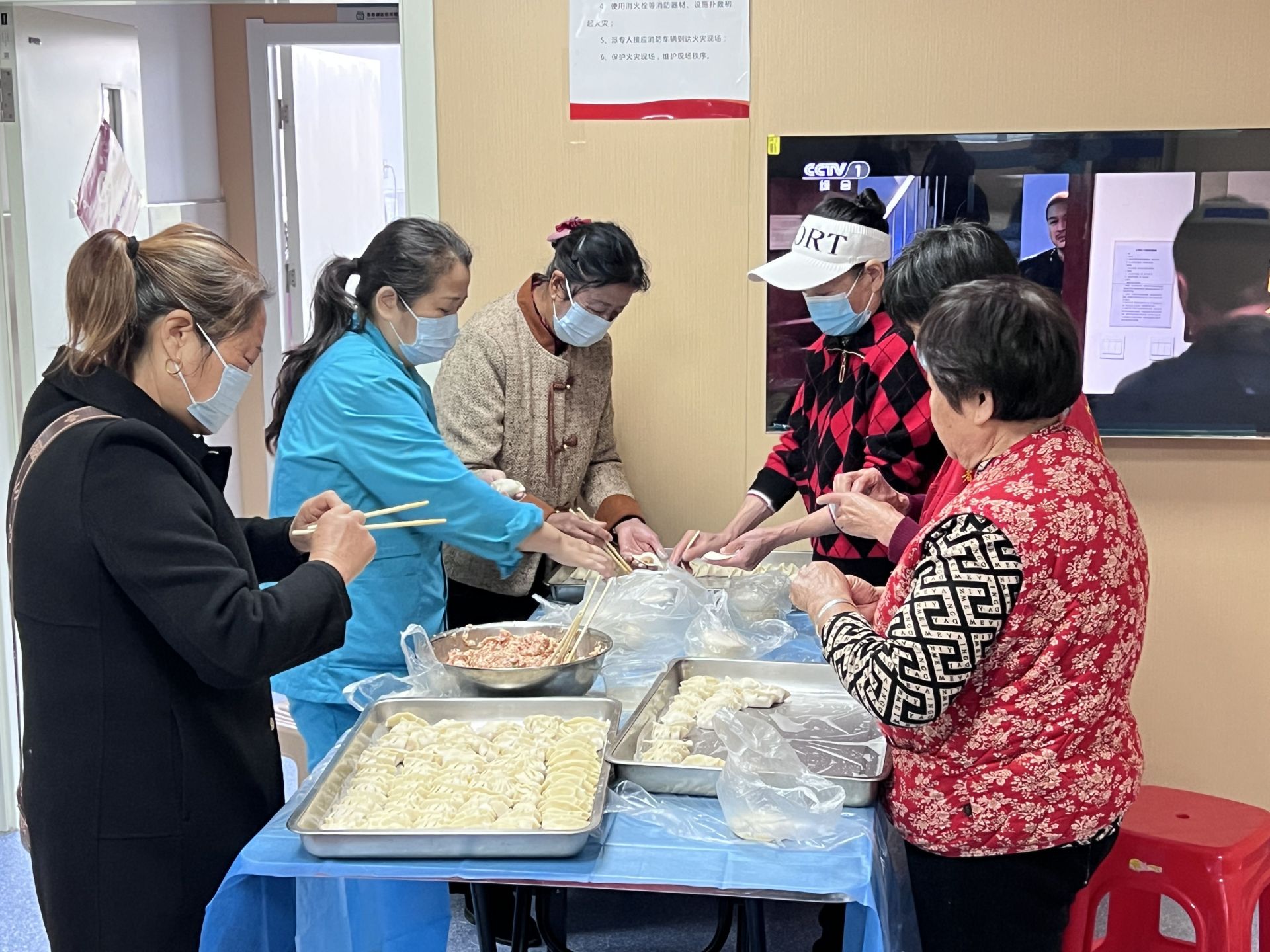 活动当天,康养中心内暖意融融,欢声笑语不绝于耳。志愿者们分工协作,默契配合。活动大厅一角,大家围在一起,擀皮、调馅、包捏,动作娴熟,一气呵成。不一会儿,一个个形似元宝、饱满诱人的饺子便整齐地码放在盘子里,足足400多个。这不仅仅是食物,更是包裹着浓浓邻里情与敬老意的“暖心饺”。