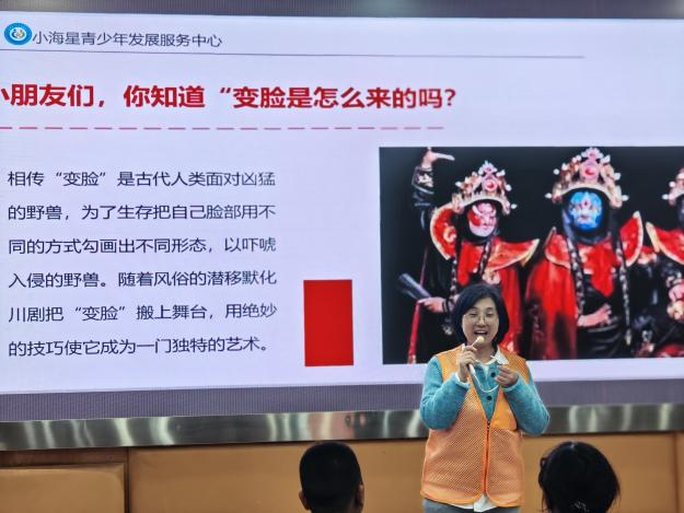 活动伊始,专业老师通过生动的讲解,为孩子们揭开了川剧变脸的神秘面纱。从变脸的历史渊源、不同脸谱颜色与图案所代表的角色性格与命运,到其精妙莫测的表演手法与其中蕴含的智慧与文化内涵,孩子们听得津津有味。这不仅是一次知识的普及,更是一场跨越古今的文化启蒙,让孩子们对这项传统技艺产生了浓厚的兴趣。