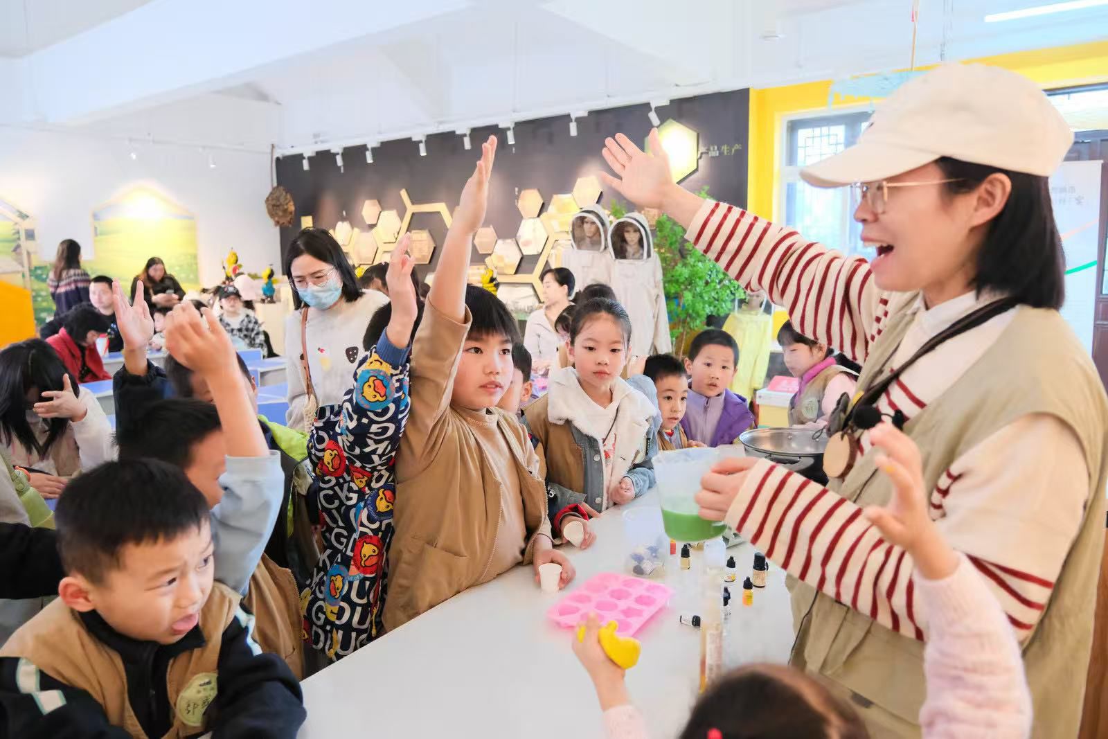 收官活动远不止于一场科普。在博物馆内,孩子们通过专业的讲解与生动的模型,沉浸式地学习了蜜蜂从卵到成虫21天的完整生命周期,惊叹于蜂巢社会精密的组织与分工。