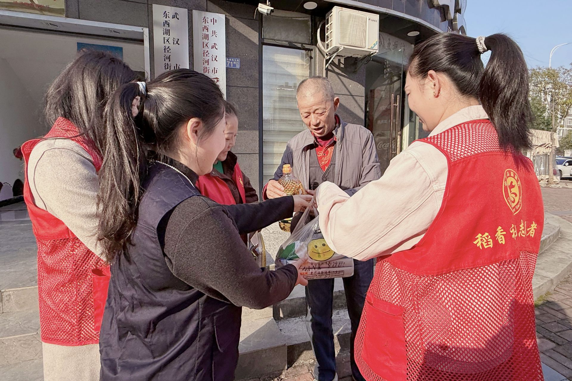 径河街稻香社区:稻香情暖重阳节 “益”起敲门送关怀