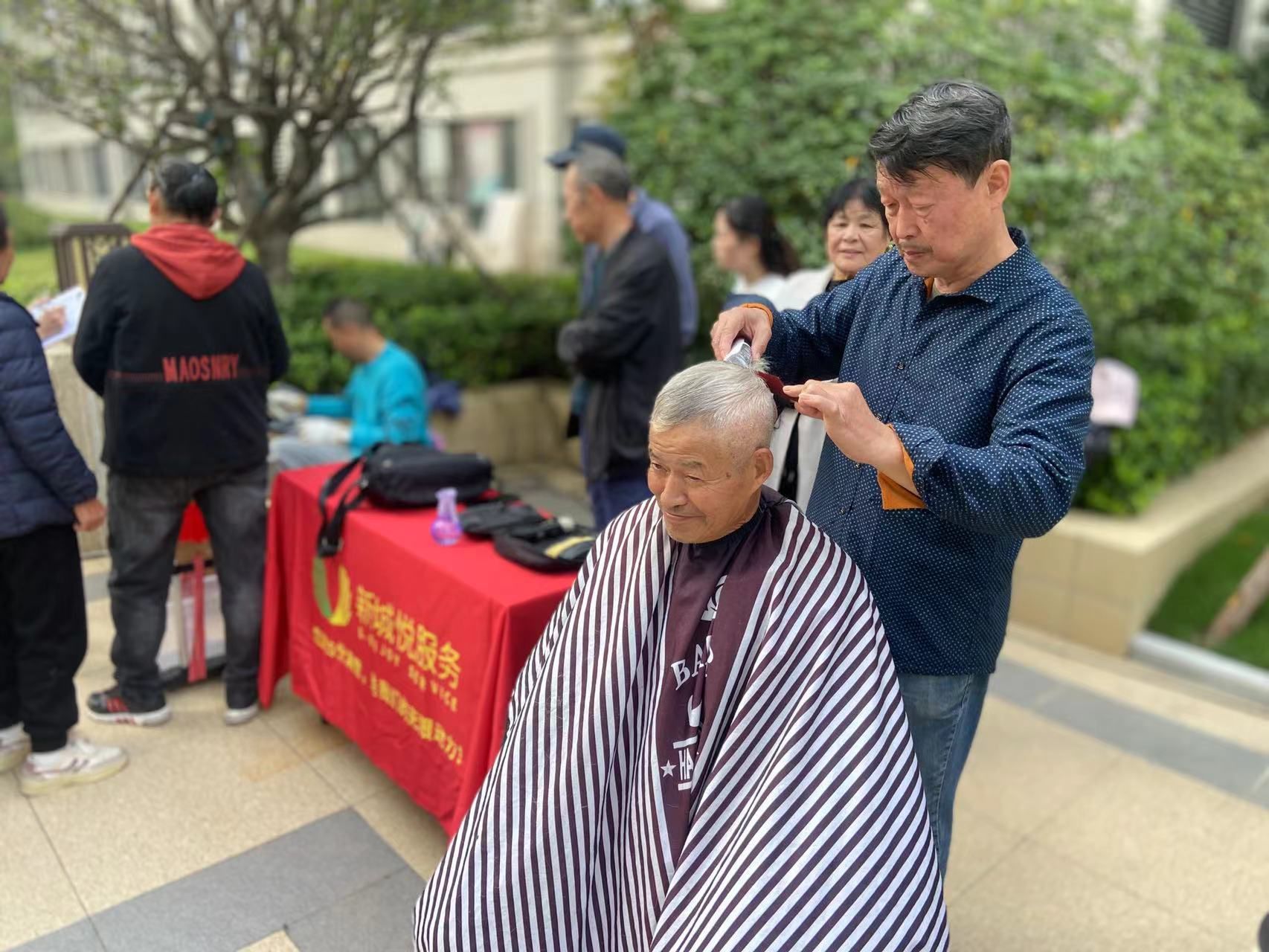 公益理发区为老人免费修剪头发