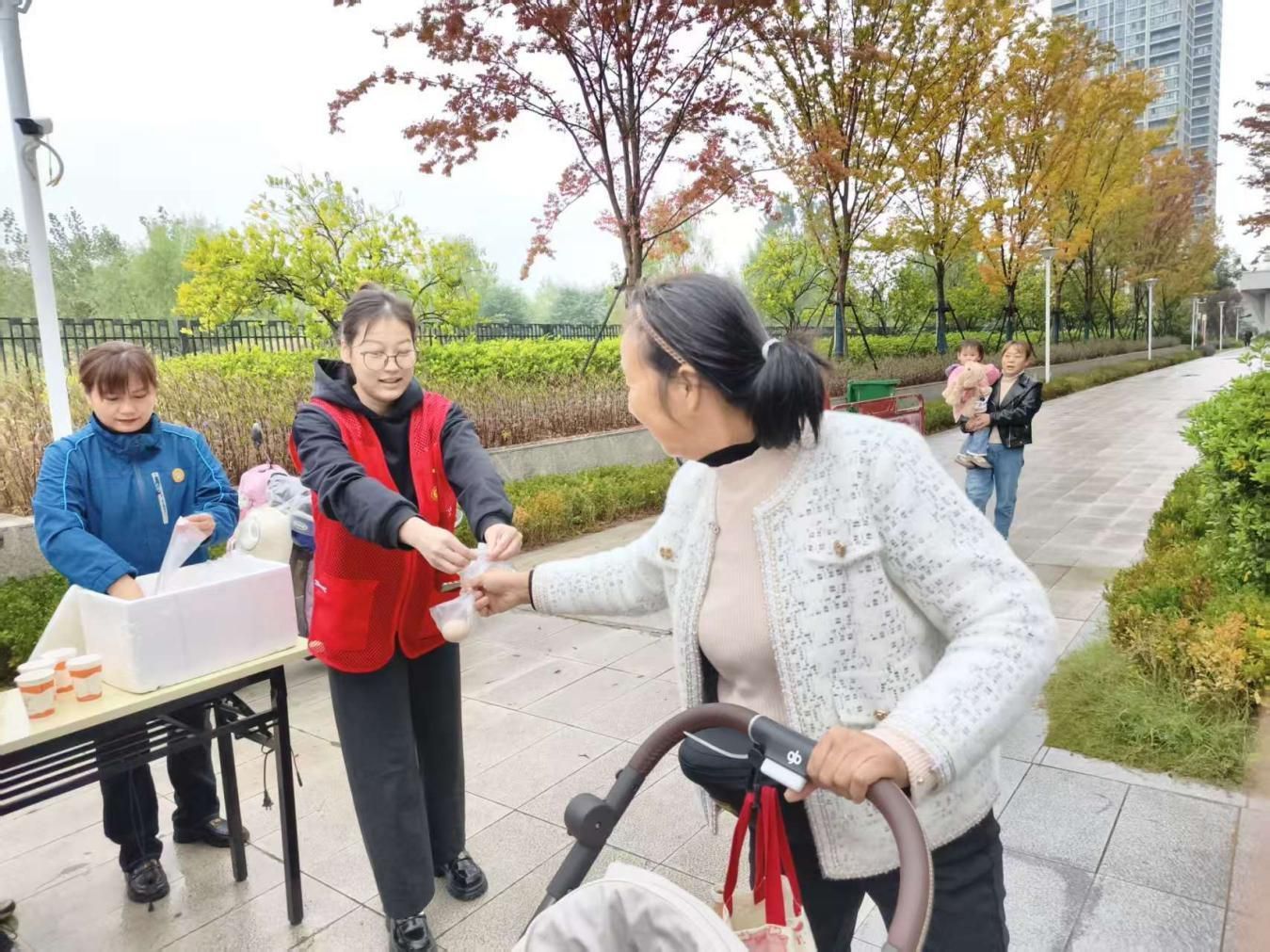 重阳节虽过,但尊老敬老的暖意未减。10月30日,将军路街杨柳社区联合地铁时代云上城物业,将小区门岗化作“暖心驿站”,为辖区老年人免费分发新鲜鸡蛋与热豆浆,传递一份份接地气的关怀。