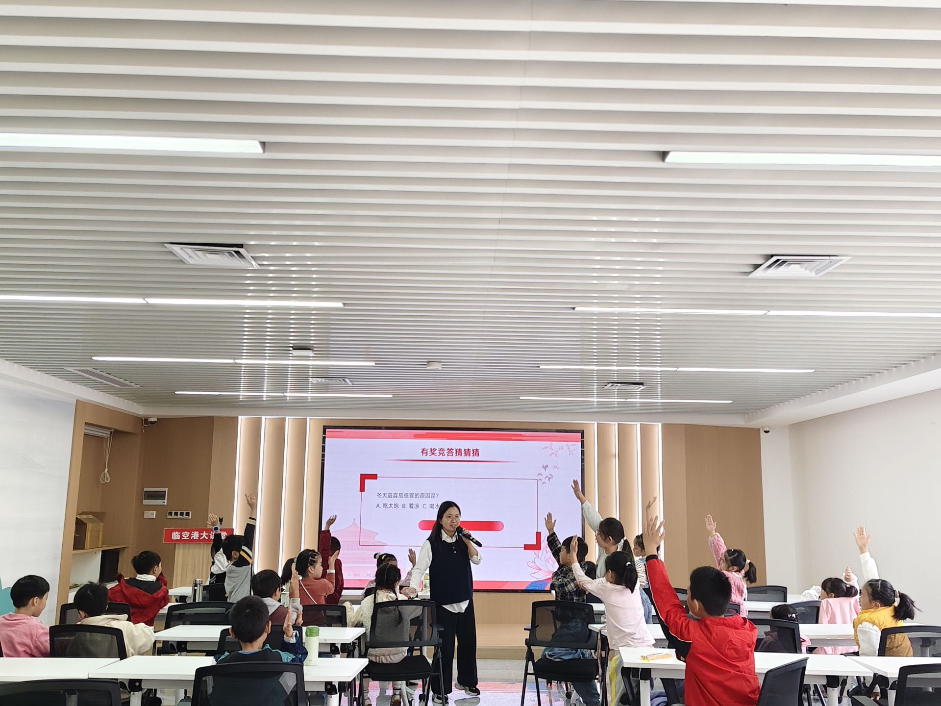 “水始冰,地始冻,雉入大水为蜃……”6分钟动画短片带领孩子们云游南北,了解了立冬气候特征与“北饺子、南汤圆、冬季滋补养生”等习俗。随后,两位“领读小助手”登台,带领全场齐诵李白与王稚登的《立冬》诗篇,在诵读中把古诗“读成有节奏的雪花”。课堂最后,10道趣味抢答题点燃全场,“立冬是第几个节气?”“立冬我们要注意什么?”孩子们纷纷举手抢答,秒变“立冬小学霸”,在互动问答中巩固了节气知识。