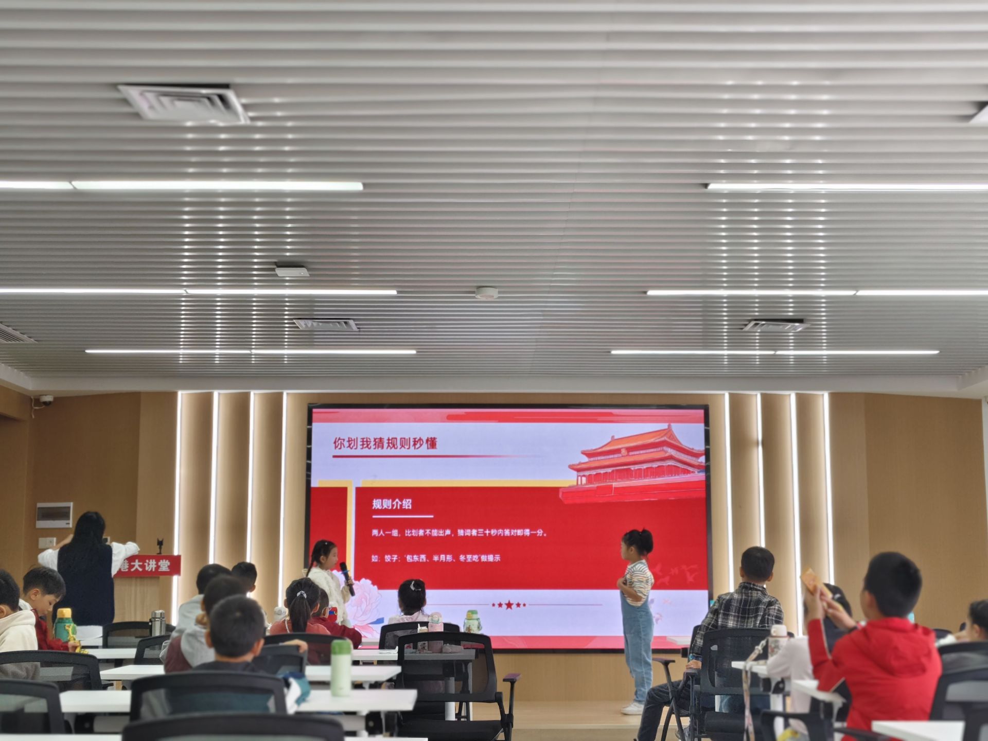 “你划我猜·立冬版”游戏环节巧妙地将节气知识与团队协作相结合,把活动推向高潮。4组孩子两两搭档,在5分钟内通过肢体或语言描述“饺子”“糖葫芦”“滑冰”等15个冬令词,且不能“泄密”词中任何一个字。孩子们手舞足蹈、踊跃参与,在欢声笑语中加深了对立冬习俗的理解,提升了团队协作与表达能力。