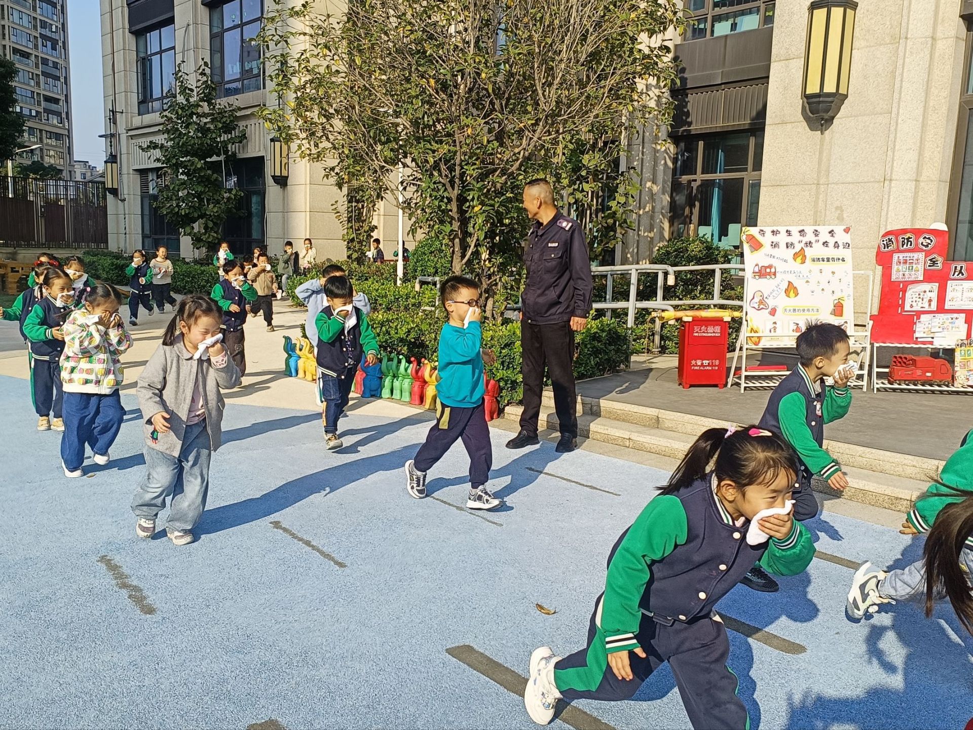 班主任化身“安全老师”,通过动画短片、卡通展板和互动问答等形式,向孩子们讲解火灾危害、报警要点及逃生技巧。“火警电话是多少?”“遇到烟雾要趴着走还是站着跑?”孩子们踊跃举手回答,在轻松氛围中掌握自救要领。物业人员还展示了消防服、防毒面具等装备,邀请小朋友试穿体验,激发他们对消防安全的兴趣。