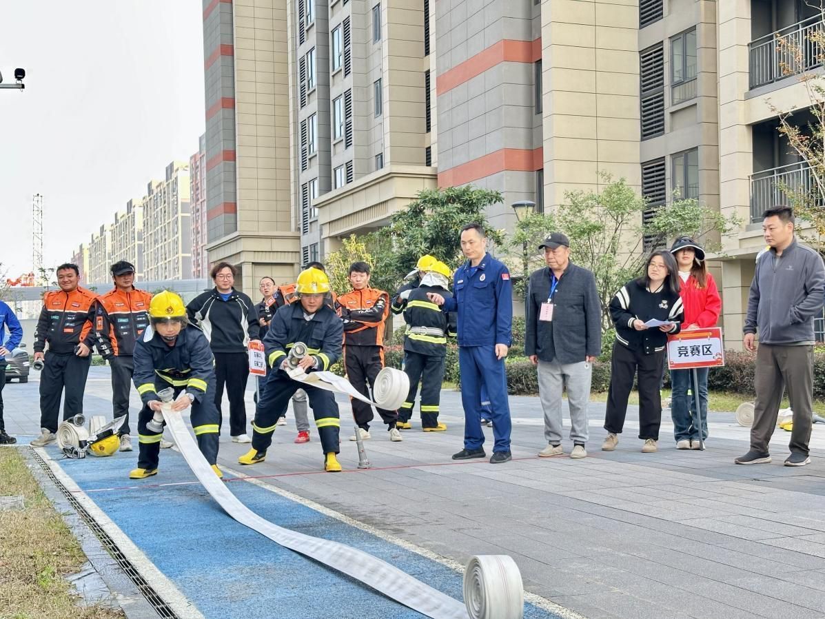 在全国消防日来临之际,11月4日,将军路街刘家墩社区以“全民消防、生命至上——安全用火用电”为主题,举办应急消防技能大比武,街道办事处副主任出席活动。此次活动由刘家墩社区主办,街平安建设办、街派出所、社区卫生服务中心协办,来自社区共建单位、物业公司及应急服务队的6支参赛队伍同场竞技,既是实战化的消防技能比拼,更是社区“六个壹起”治理体系中安全建设的生动实践。