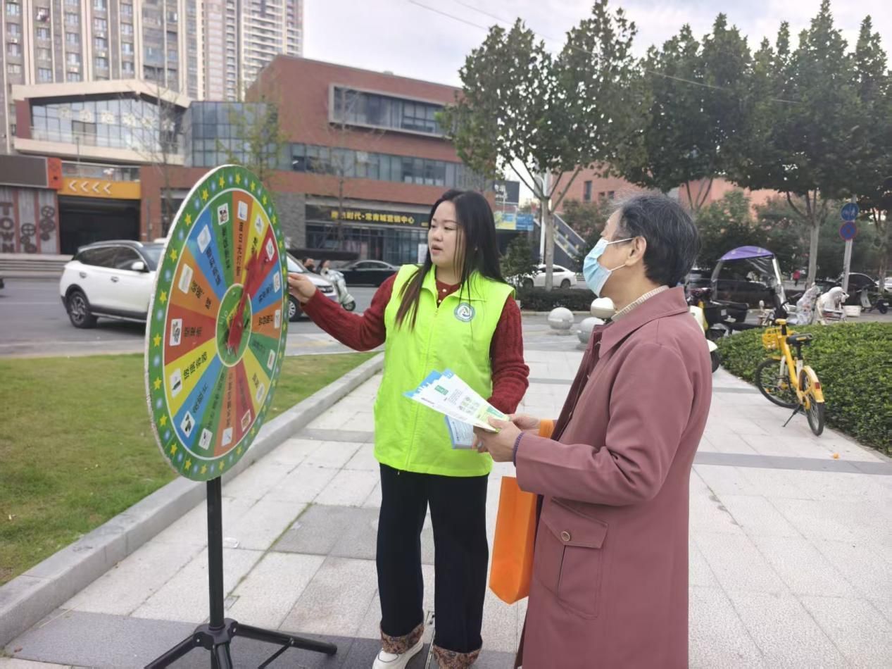 工作人员面向周边商户和居民宣讲垃圾分类知识。