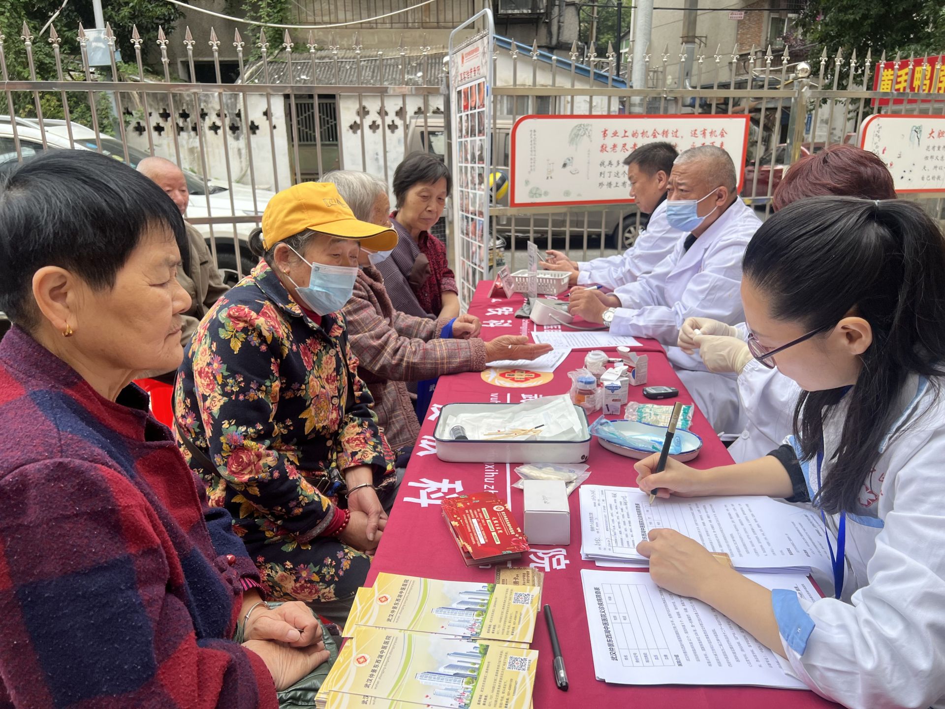 仲景中医医院的医护人员耐心地为每一位居民进行基础筛查,细致地为居民消毒、采血,测量血压和血糖。测量结束后,医生会立即结合数值给出初步建议,如“阿姨,您血压稍微偏高,平时炒菜要少放点盐,适当散散步”,将专业的健康指导融入家常对话中,让居民倍感亲切。福满家养老服务中心工作人员则协助引导居民有序参与,同时普及养老健康知识。