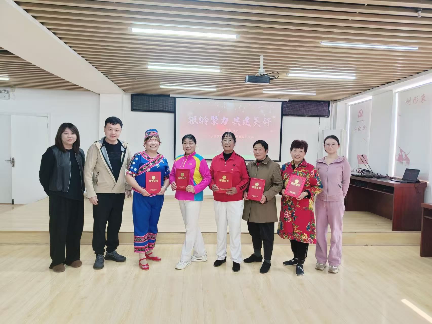 在表彰环节,邱春华、田重玲等十位优秀学员和志愿者接过荣誉证书,笑容灿烂。他们用行动证明,年龄不是界限,热情不分早晚。每一位长者,都可以是美好社区的共建者。