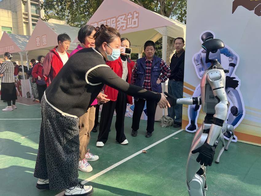 与之交相辉映的是“科技未来港”。春晚同款宇树机器人表演的太极拳刚柔并济,并与居民亲切互动、握手合影。健康服务站内,职业病预防专家现场提供专业咨询并提供实时心率、血压监测,构建起一道社区健康安全网。“没想到我们老年人也能这么‘潮’,和机器人打太极,这日子越过越有盼头了!”一位正在体验的退休职工王阿姨笑着说。