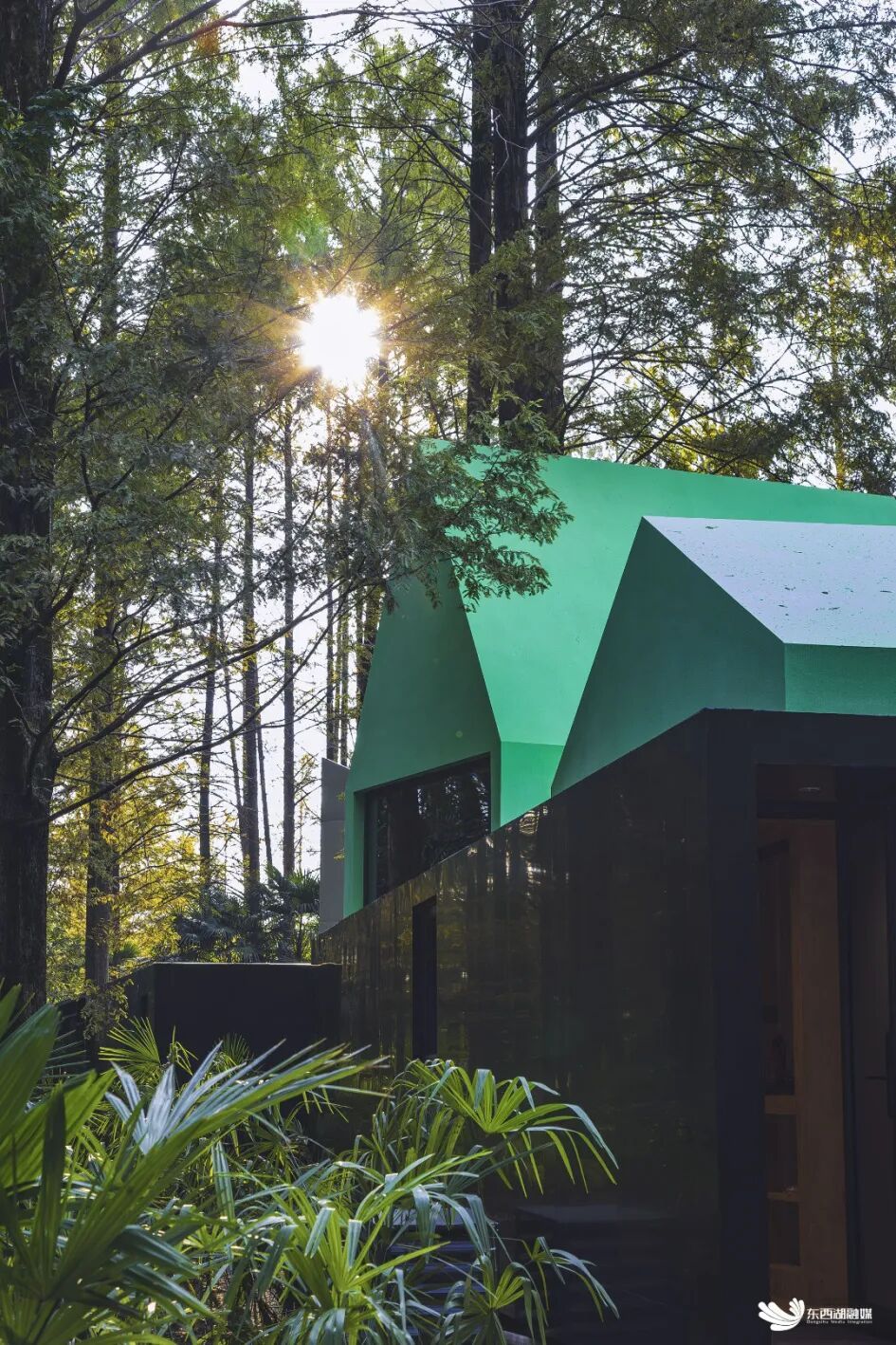 据介绍,出于对自然的极致尊重,美悦达个个世界·秘境保留了场地的每一棵树,房屋采用全架空装配式木结构,地面不做任何硬化和人工景观,最大限度保持水杉林的原生态场景。同时,设计师巧妙地运用光影、材质与空间,让每一栋民宿都与周围的自然环境完美融合。