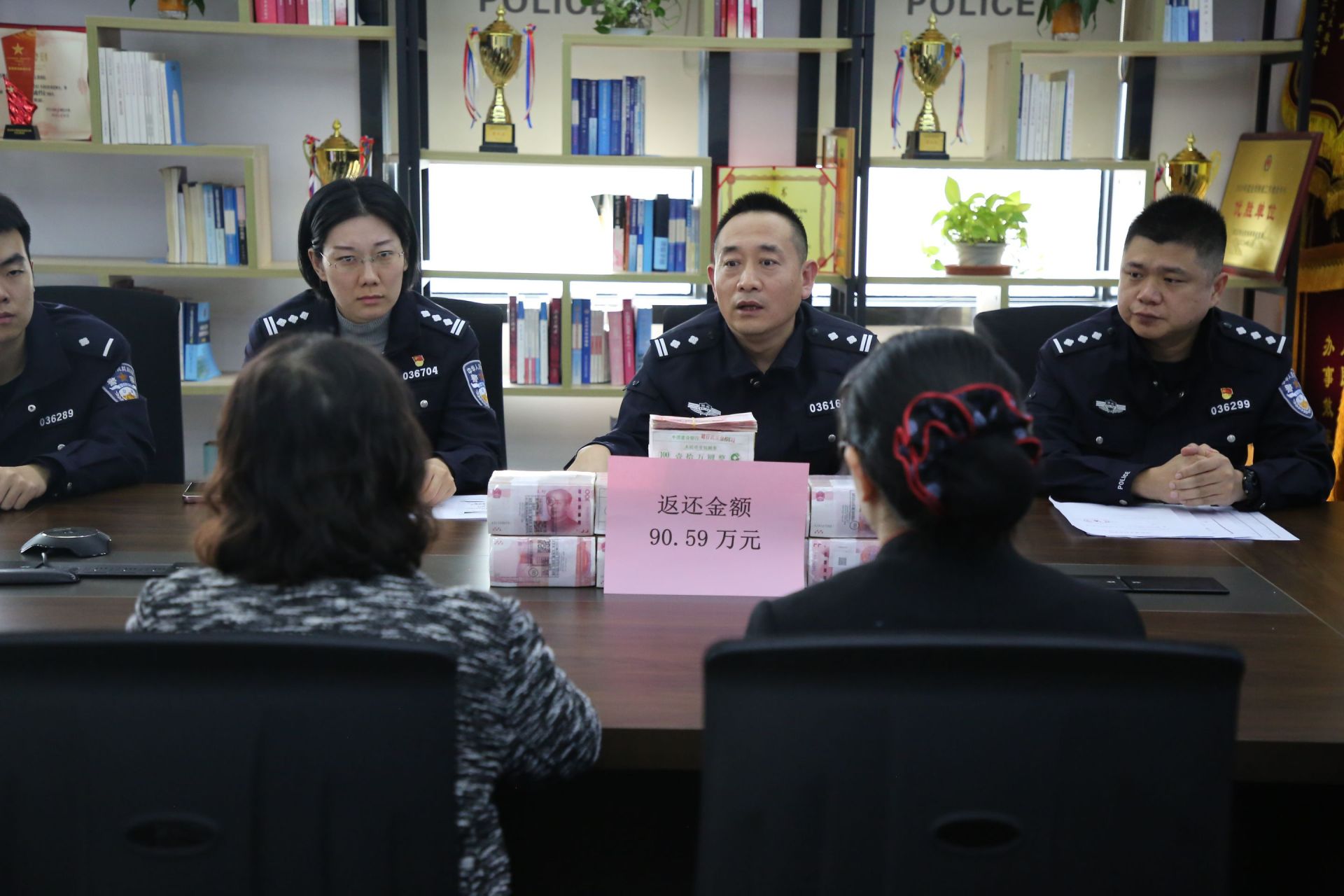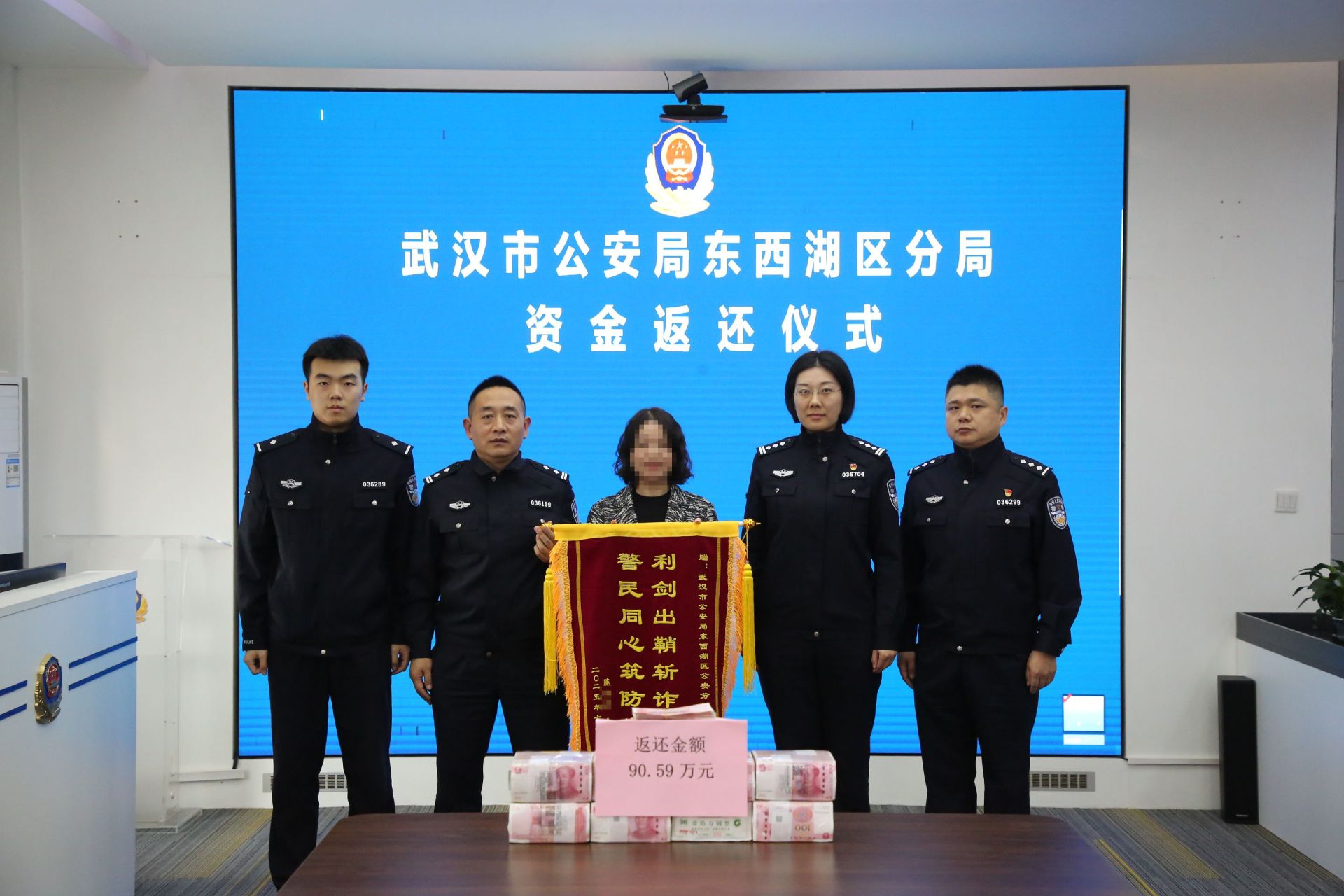 另一方面,“胡冰博士工作室”通过对诈骗款的追踪溯源,联系多方反诈中心开展核查,最终寻找到远在外省的受害人林先生。“发还仪式,启动!”11月12日,受害人林先生委托律师,来到东西湖区分局刑侦大队内。民警将90.65万元的被骗款项,现场发还。
