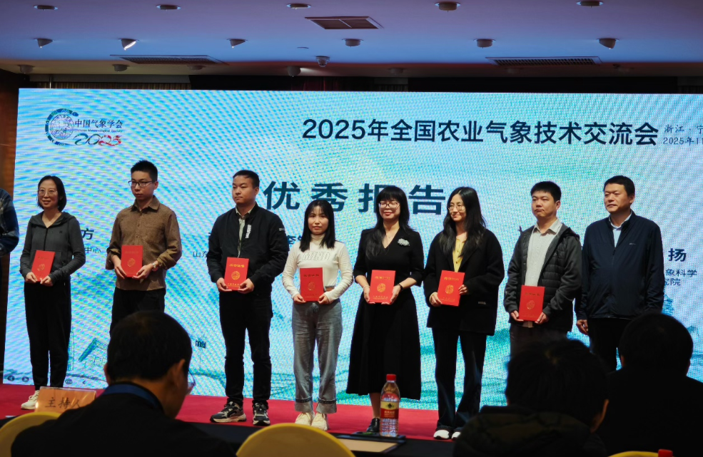 11月11-14日 ,2025年中国气象学会全国农业气象技术交流会在浙江省宁波市召开。会议邀请了全国农业气象专家就遥感和人工智能应用、作物生产早期预测、农业大灾风险研究、作物产量预报技术集成、农业气象未来发展、农业气象服务效益评估等方面做主题报告。共收到全国200余篇论文投稿。