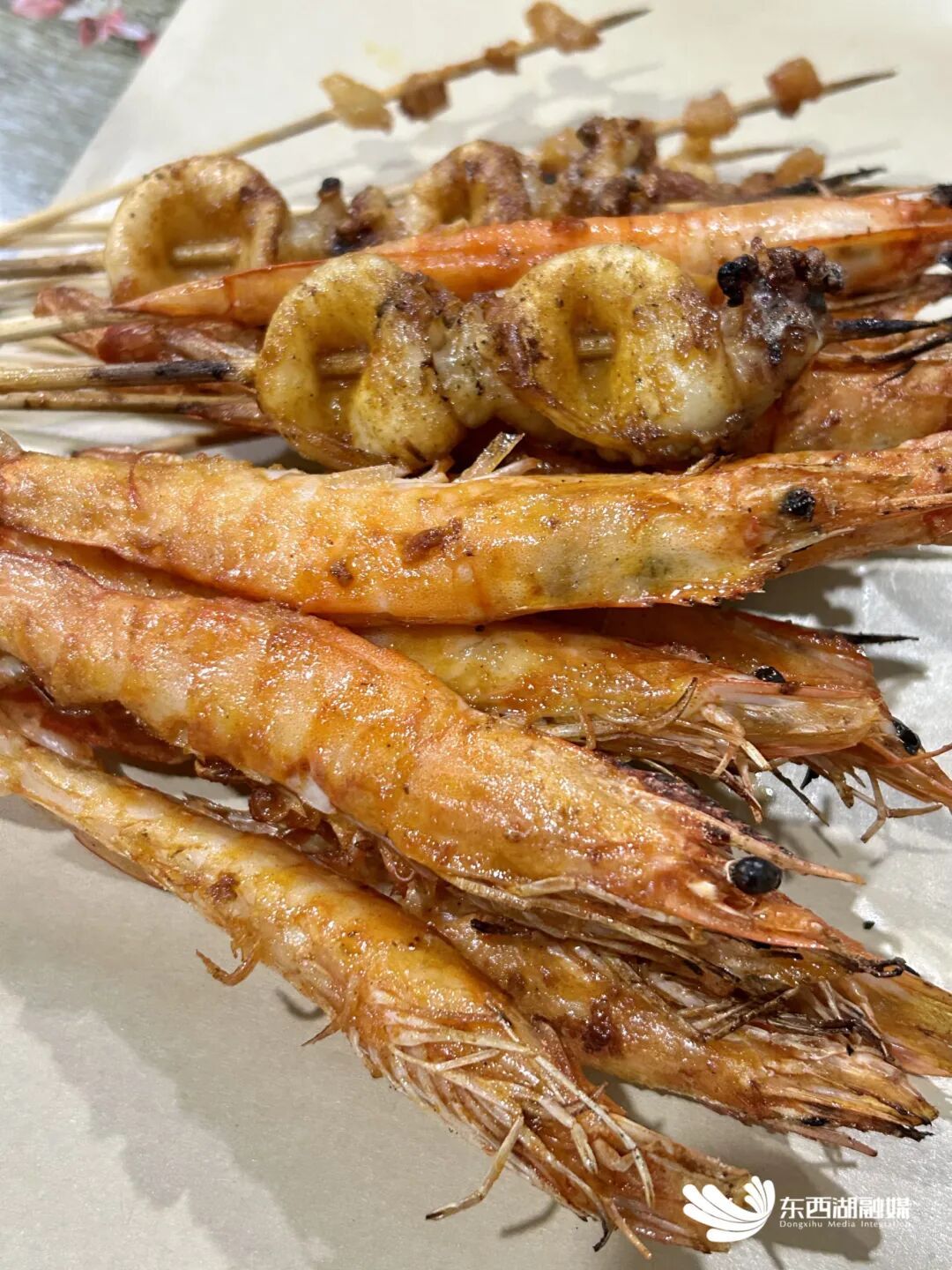 旁边桌的大哥灌了口啤酒,满足地叹:“在吴家山,我就好这口小黄鱼!”烟火缭绕里,小黄鱼的鲜辣和街巷的温热一起下肚,这就是吴家山。老客都知道,灰灰家品类不多,但样样能打。鱼尾滑嫩入味,基围虾紧实弹牙,闭着眼睛点也不会踩雷。最接地气的是那个“盘子”——所有烤串都往一张大黄油纸上一铺,不拘小节,烟火气十足。要的就是这个味儿,要的就是这个感觉。