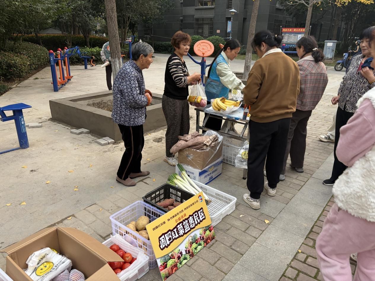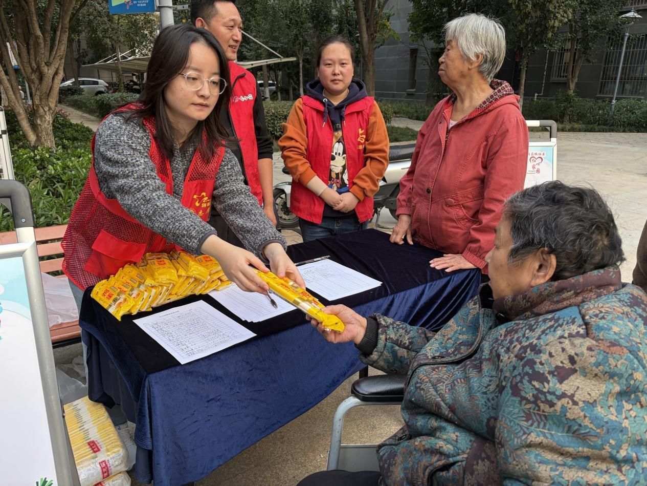 另一边的“周四红菜篮”惠民售卖区同样火爆。区农投集团惠万家党支部准备了黄瓜、番茄、土豆等新鲜蔬菜,以低于市场价的惠民价格售卖,蔬菜品质优良、价格实惠。红心商圈公益商家“番小茄”则暖心推出敬老福利,为到场的老年人免费赠送面条,一句句贴心的问候、一份份实用的礼品,让老人们感受到社区与商家的双重关爱。