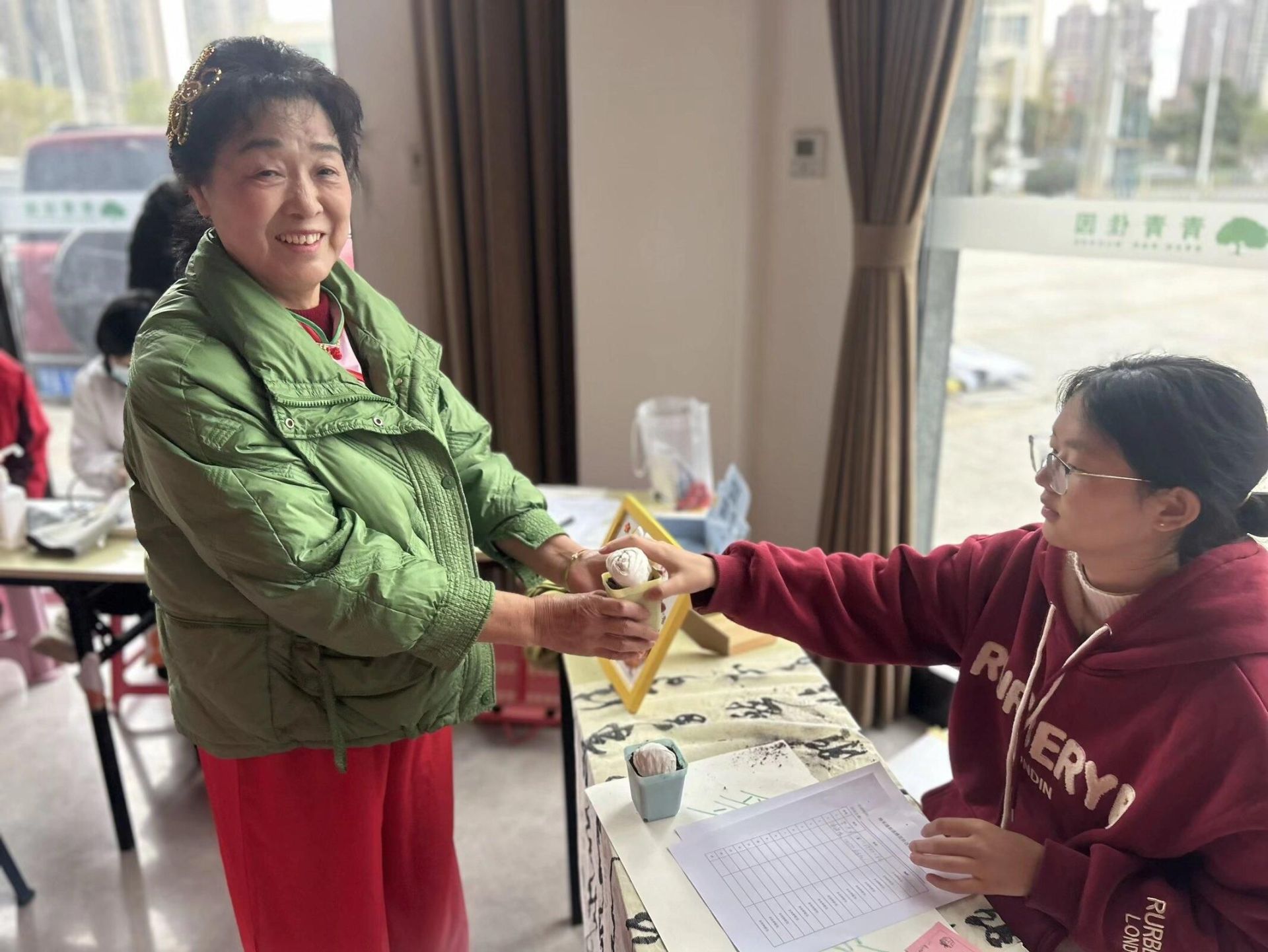 成果展示区分为“活动瞬间照片展”与“居民手工成果展”两大板块,吸引不少居民驻足。照片展按活动类型分区陈列,定格了过往邻里互助、手工创作的温馨画面,志愿者讲解照片背后的故事,“这张是上次社区手工课上,大家一起做艾草锤的场景。”“这张是一起为社区挂上公约牌的画面。”不少居民在照片中找到熟悉的身影,笑着与身边人分享回忆。手工成果展则分类摆放儿童组、老年组、中青年组的手工作品,从创意绘画到编织物件,尽显居民巧思。