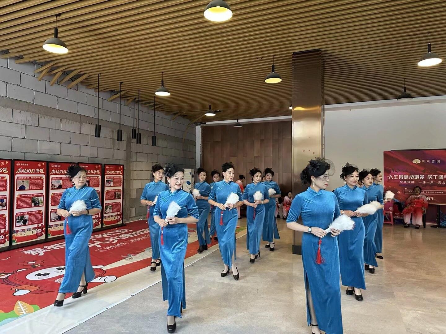 表演环节6个节目轮番登场,个个饱含心意。邻里情舞蹈团队带来的开场鼓舞《精忠报国》瞬间点燃氛围,凤彩时装艺术团的旗袍秀《万水千山总是情》尽显东方美与邻里情,长青舞蹈队的双扇舞《祝福祖国》传递对生活的热爱,将花社区工作人员合唱的《天地龙鳞》让居民倍感亲切,脱口秀《从社恐到社牛的社区奇遇记》以接地气的故事逗得现场笑声不断,金光闪闪舞蹈队的民族舞《把最美的歌唱给妈妈》为表演环节画上温情句号。