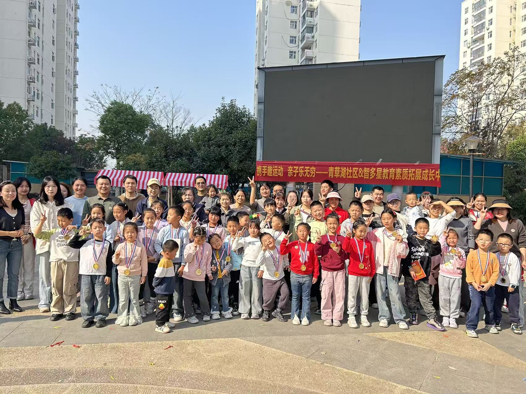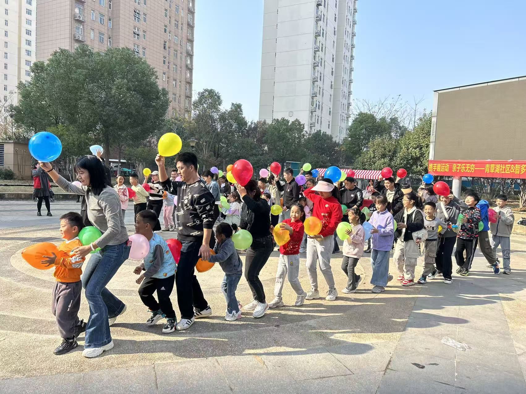 11月16日上午,青草湖社区与智多星教育联合主办的“携手趣运动,亲子乐无穷”亲子运动会在稻香苑小广场欢快举行。活动吸引了25组亲子家庭参与,这场看似简单的社区活动,实则是青草湖社区创新治理模式、构建社区共同体的一次暖心实践。