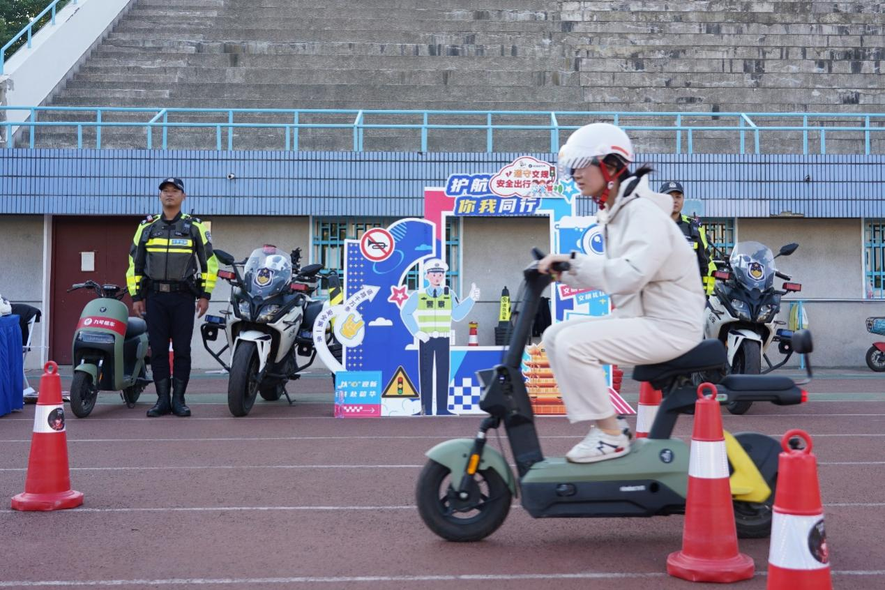 交通安全问答区由交警部门联合九号电动车共同设置,工作人员围绕骑行安全、道路通行规则等内容开展抢答互动,让交通法规在趣味比拼中深入人心。
