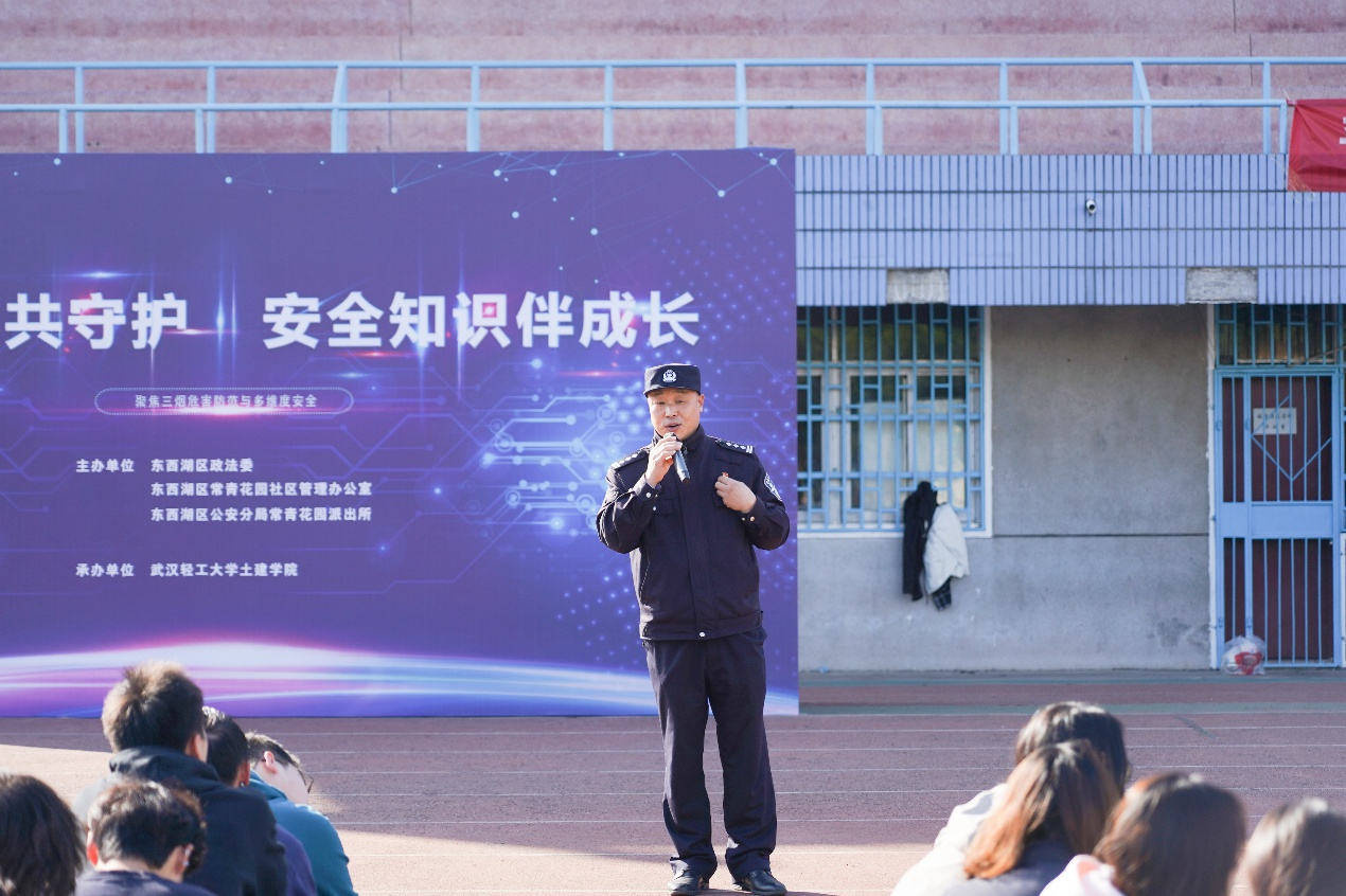为深入推进平安校园建设,切实提升高校学生安全防范意识与自我保护能力,近日,东西湖区委政法委、常青花园社区管理办公室、东西湖区公安分局常青花园派出所等单位走进武汉轻工大学,共同举办“平安校园共守护,安全知识伴成长”主题活动。