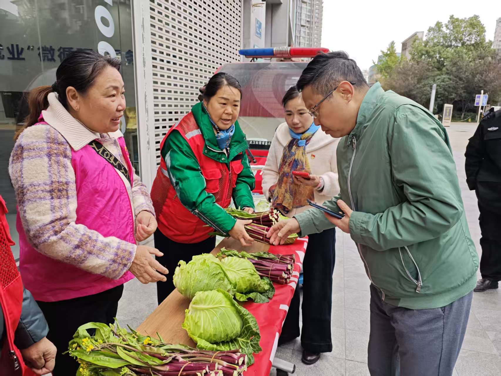 为深化合作内涵、增进情感联结,活动设置“文创传情·携手未来”非遗体验环节。双方党员代表共同参与非遗竹编相框制作,在穿针引线的亲手劳作中拉近彼此距离,借“经纬交织、坚韧牢固”的竹编特质,寄托两社区协作共赢、情谊长存的美好愿景。作为实践延伸,现场同步开展“优质农产品直供”活动,新华社区将田间地头的新鲜蔬菜包直接送达江汉关社区居民手中,架起“田间到餐桌”的惠民桥梁,既破解“卖菜难”“买菜贵”问题,又让居民切实感受到共建带来的实惠,让党建成果真正惠及群众。