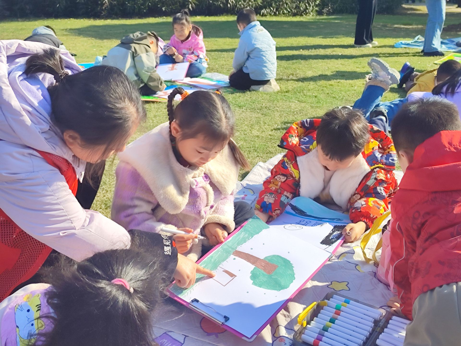 “小朋友,你看这棵树的树叶可以用渐变的颜色来画,会更生动哦。”“这笔要拿稳,轻轻落笔,慢慢勾勒。”志愿者们耐心细致地讲解,手把手地教学,孩子们听得认真、学得投入,不时举手提出自己的疑问,现场互动氛围十分融洽。活动接近尾声,一场小型的“幼儿绘画作品展”在公园一侧拉开帷幕。孩子们小心翼翼地展示着自己的作品,相互交流创作心得,脸上洋溢着自豪的笑容。