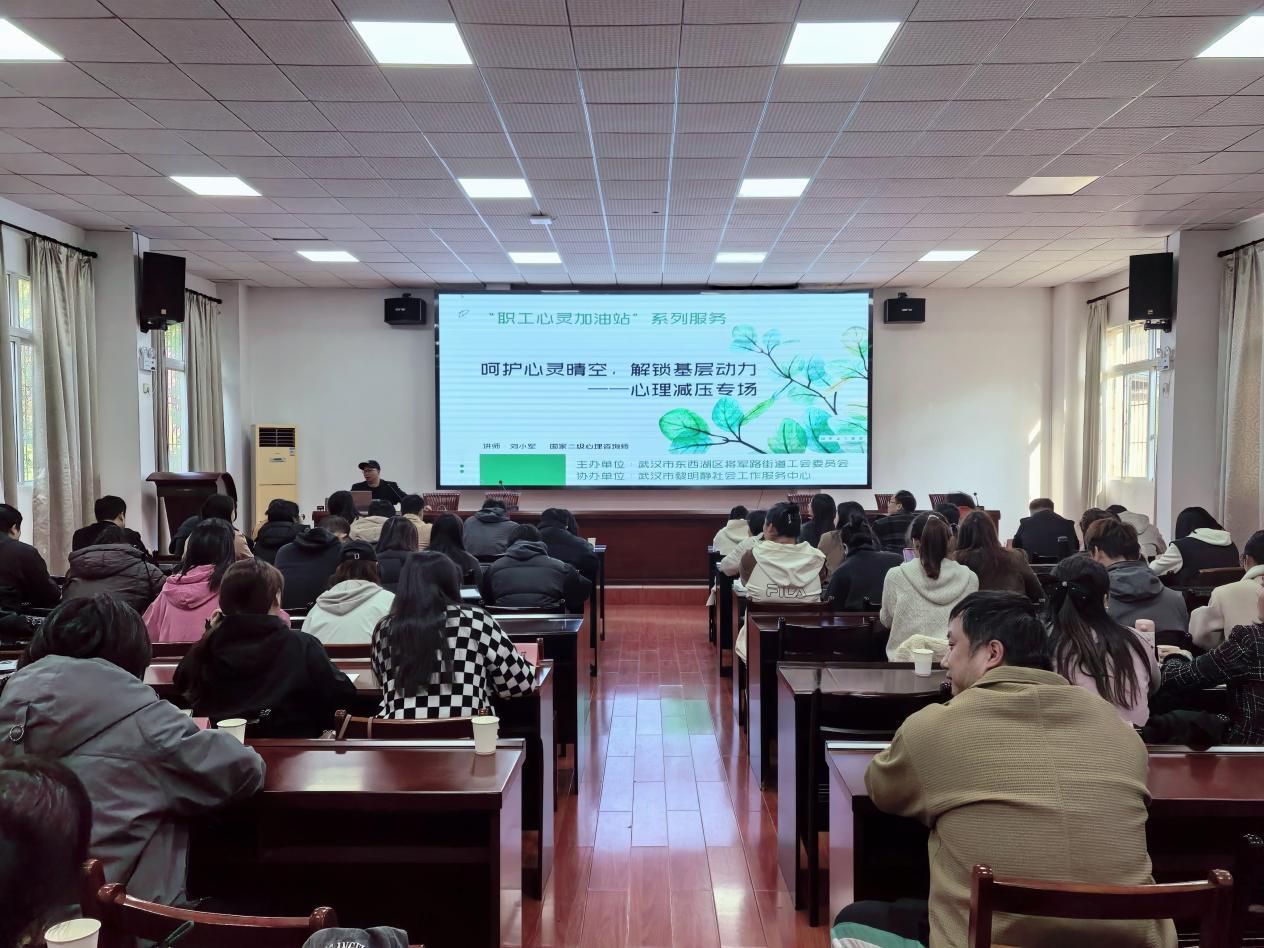 为切实守护职工心理健康,聚力构建和谐工作环境,缓解基层工作者身心压力。11月21日下午,将军路街道工会举办“呵护心灵晴空,解锁基层动力”心理健康专场活动,特邀国家二级心理咨询师为60余名干部职工带来一场沉浸式心理疏导课程,通过科学减压赋能基层队伍,织密职工“心灵防护网”。