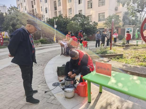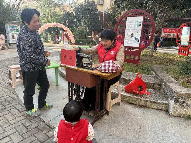 便民服务区聚焦居民日常需求,提供“一站式”志愿服务。走马岭卫生院的医师现场号脉、健康咨询、肩颈按摩,传授秋冬养生知识;爱心义剪、巧手缝补、家电检修等摊位前,志愿者们用娴熟技能解决居民小麻烦;社区工作人员耐心解答社保、医保新政疑问,垃圾分类宣传点的趣味转盘游戏让环保理念深入人心。据统计,便民服务区累计服务居民超300人次,将温暖切实送到居民心坎上。