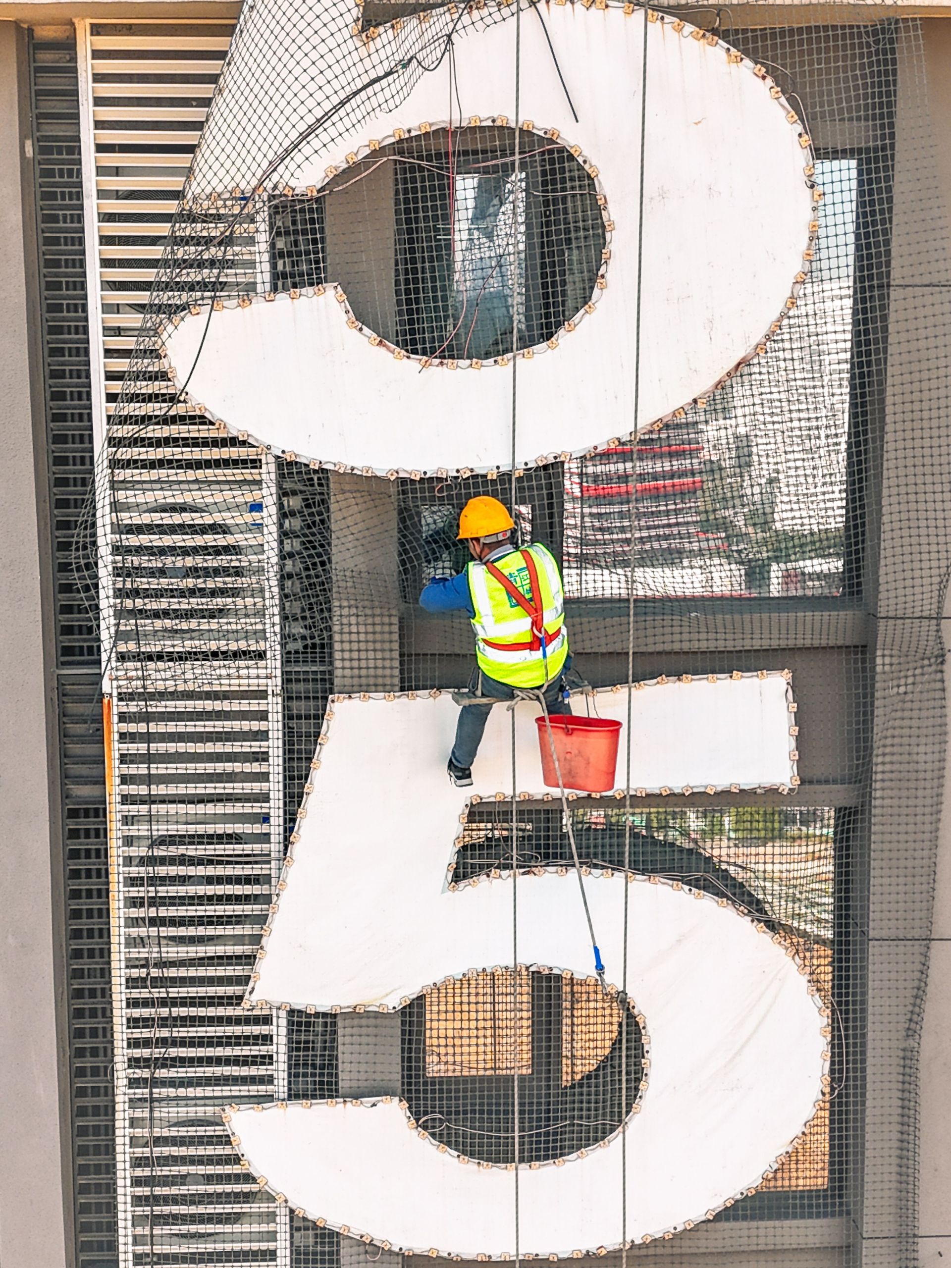 11月26日上午10点,两名“蜘蛛人”从写字楼楼顶缓缓降下,在25至29层的外墙间作业。他们头戴安全帽,身上悬挂着一主一副两根安全绳,确保万无一失。“我们每名师傅都配备了主绳和副绳,确保作业安全!”现场指挥的施工方安全经理陈玉平介绍着安全措施。只见一位“蜘蛛人”师傅麻利地卸下固定铁丝网的螺丝,另一位则在旁边辅助和保护。他们边拆除,边将拆下的部件往上提升至楼顶,避免任何物品坠落。与此同时,楼下警戒线外,物业和安全人员有序引导居民绕行,整个拆除过程专业、有序。