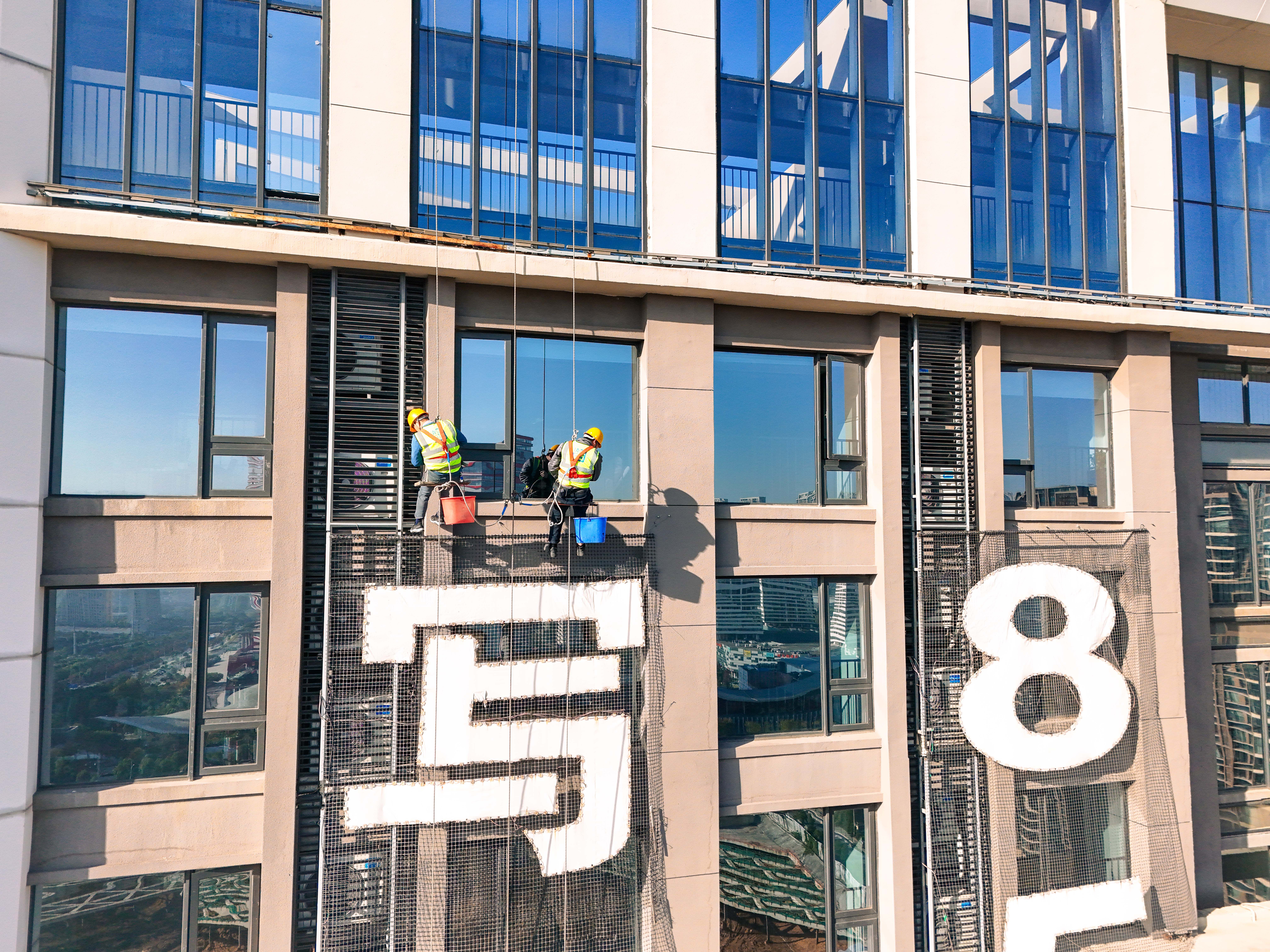 “蜘蛛人”高空拆除违规广告