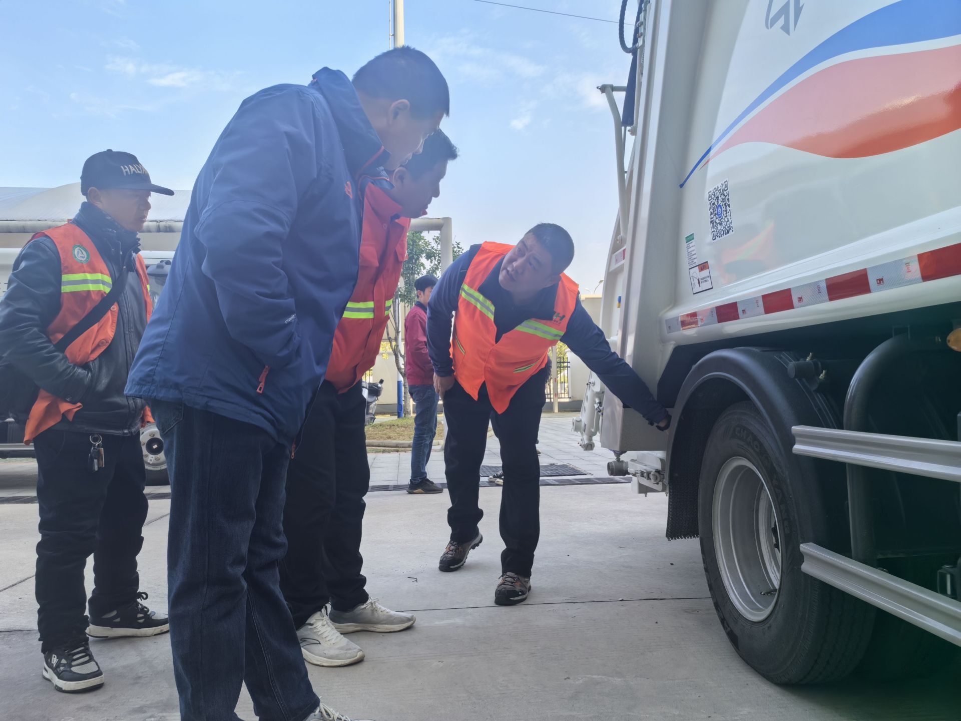 这次培训没搞“纸上谈兵”,清运师傅们先蹲在新车旁听技术人员讲“脾气”——“这新车比老车重两吨,满载转弯可得慢到15码以内,大家稳着来才安全”;接着师傅们怀揣着既激动又冷静的心情上手练“真招”——从出车前绕车查轮胎、试刹车,到装垃圾时锁箱门、看液压表,师傅们轮着操作,技术人员在旁边盯着纠正:“这起步油门轻点儿,大家清运急但安全不能急!”最后还加了“应急小测验”——模拟“液压突然漏了”“倒车时有人靠近”,师傅们边喊“关发动机!设警示墩!”边实操,把“遇事不慌”练在了手头上。