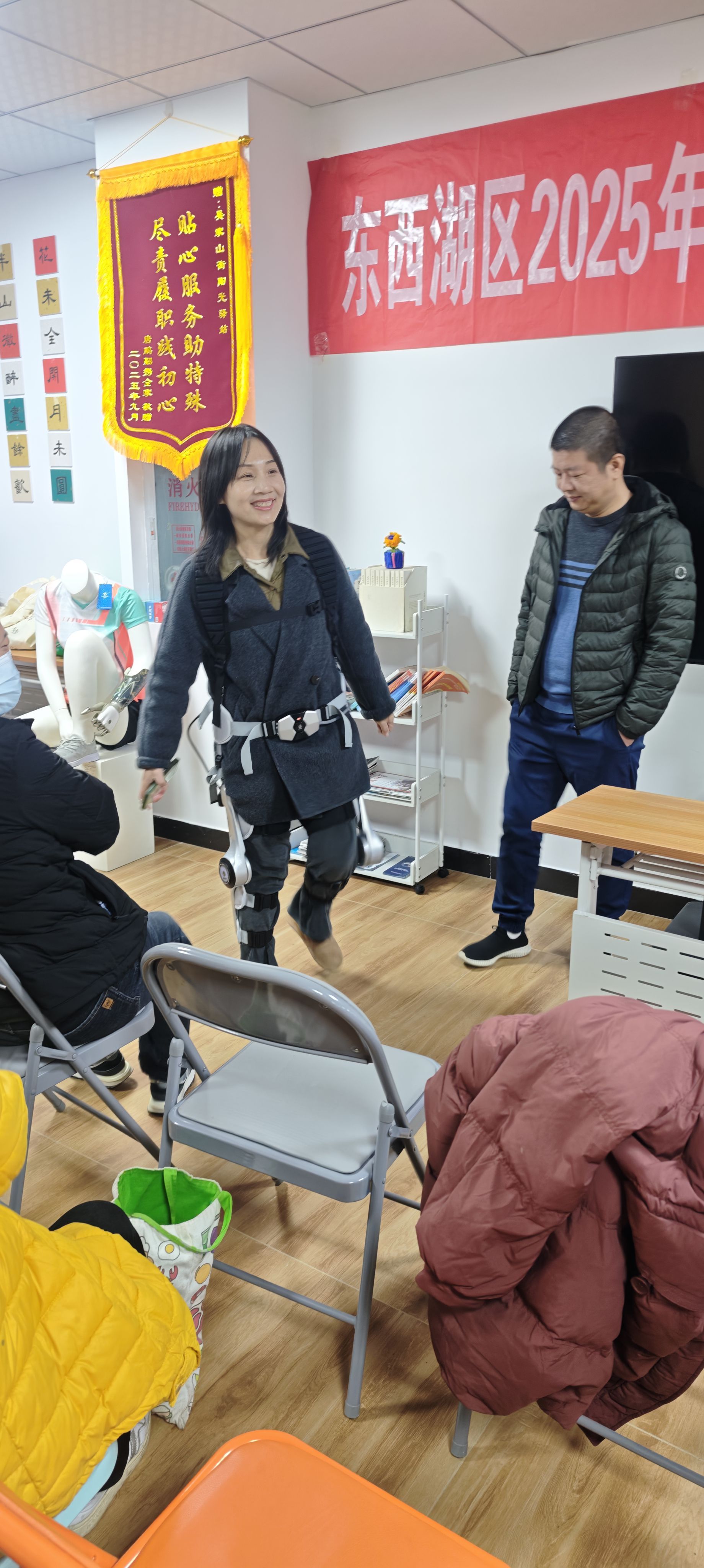 科技助残展示成为本次活动最大亮点。德诚义肢公司带来的智能机械手引发阵阵惊叹——这款搭载脑电波传感技术的设备,能精准识别使用者肌肉信号,完成抓握、书写等精细动作。现场试用的肢体残疾人士叶先生感慨:“没想到假肢能像真手一样灵活!”湖北星明言听公司则展示了护膝外骨骼、外骨骼机器人。护膝外骨骼的AI步态算法可实时调整助力模式,帮助下肢障碍者、老人、户外爱好者走得快、走得省力,避免关节损伤。外骨骼机器人是“能穿在身上的机器人”,能帮人模拟正常人的行走步态,在迈步过程中带动髋关节和膝关节的屈伸运动,给人提供力量、耐力或康复治疗,通过智能化训练提升患者参与度。一位陪同家属点赞:“科技让康复不再枯燥痛苦。”