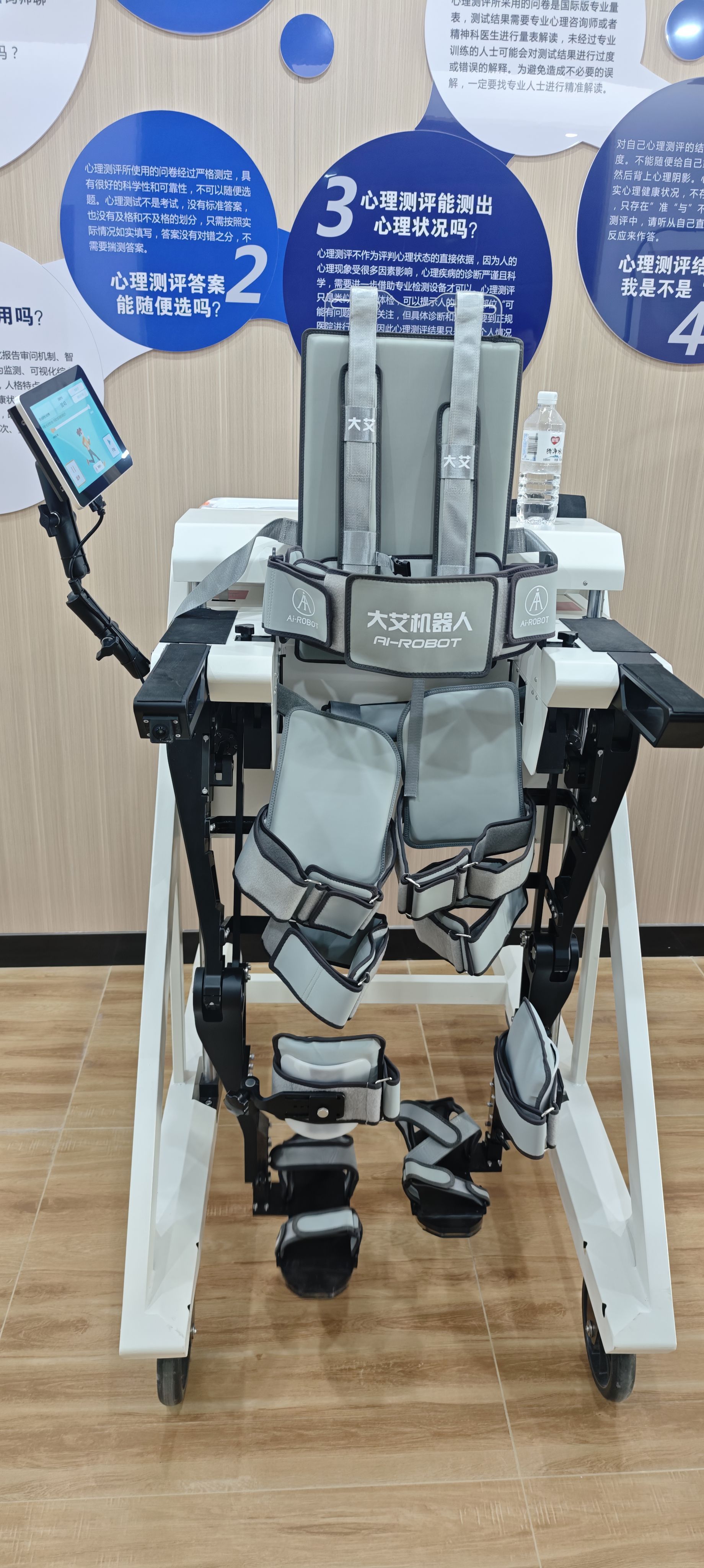 展示大艾机器人,帮助残疾人直立、康复、行走。