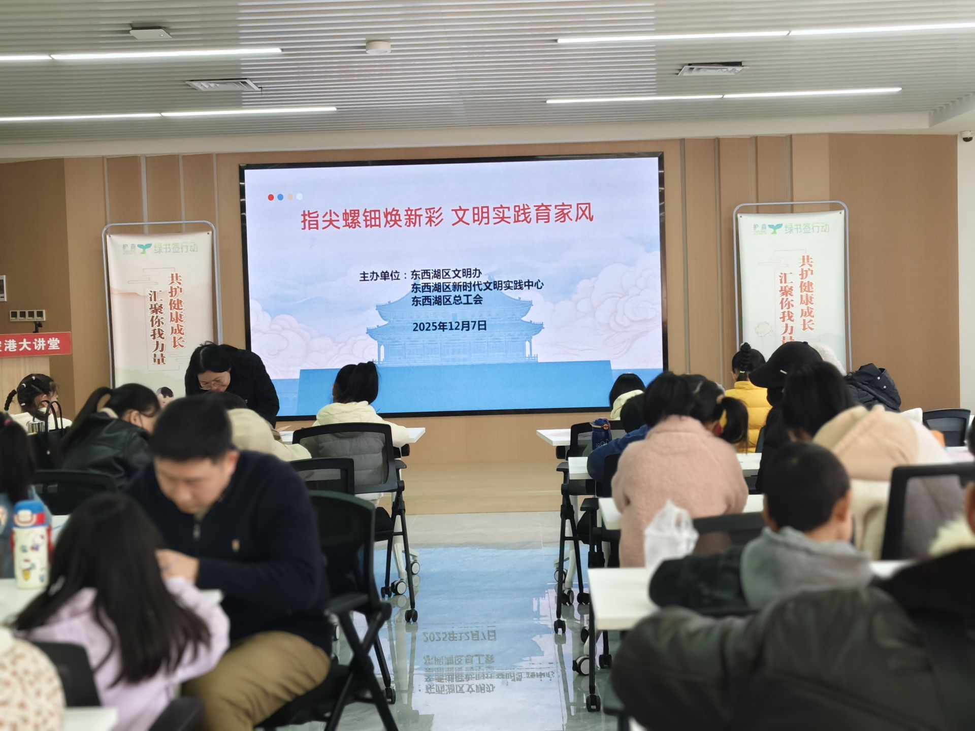 为筑牢青少年健康成长防线,深化非遗文化传承意识,12月7日上午,东西湖区文明办、东西湖区新时代文明实践中心联合区扫黄打非办举办“指尖螺钿焕新彩 文明实践育家风”亲子手工文明实践活动,24组亲子家庭参与其中,在这场集护苗教育、非遗传承与家风培育于一体的亲子实践活动中收获成长与快乐。