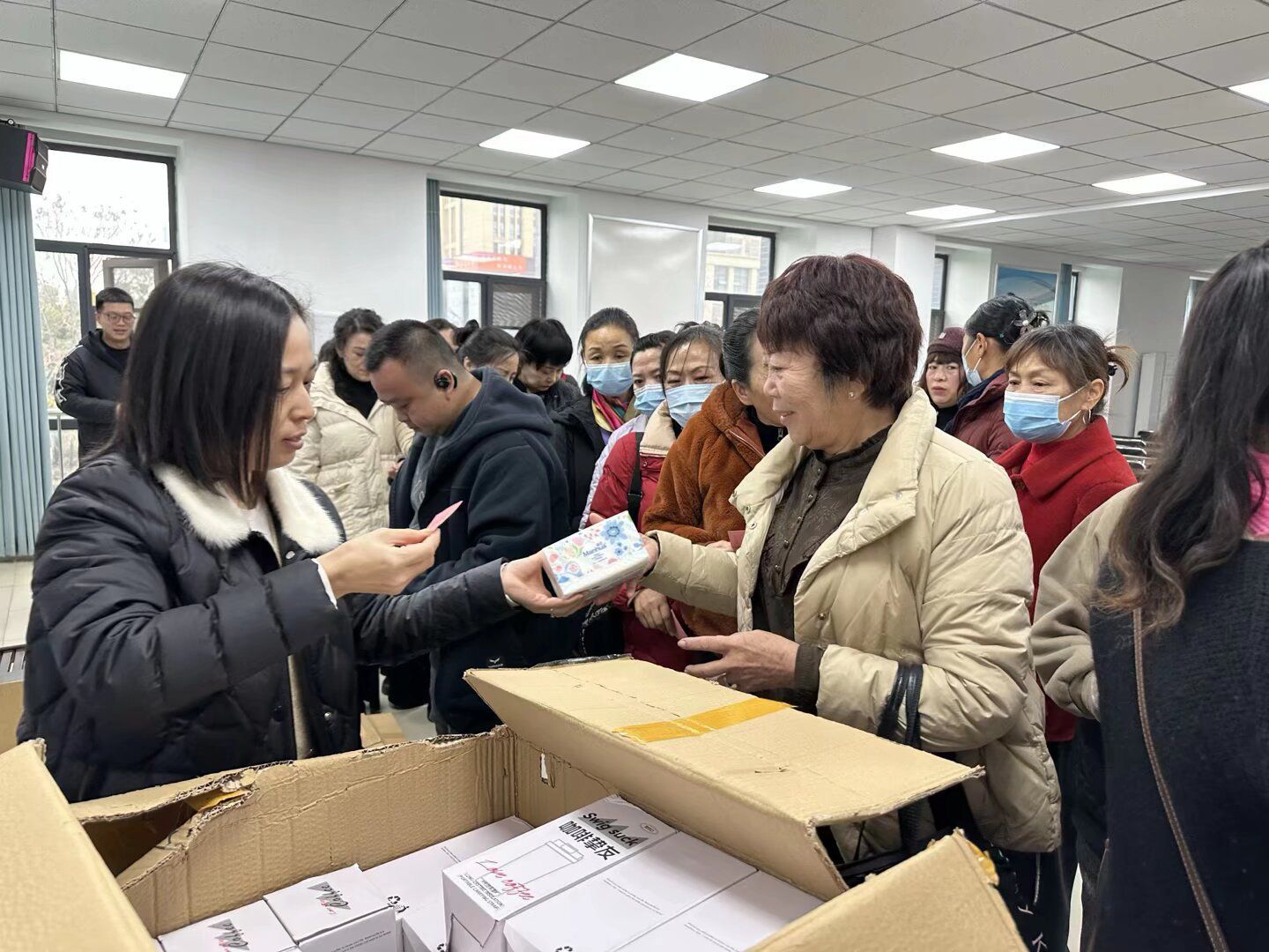 社区工作人员向居民发放礼品