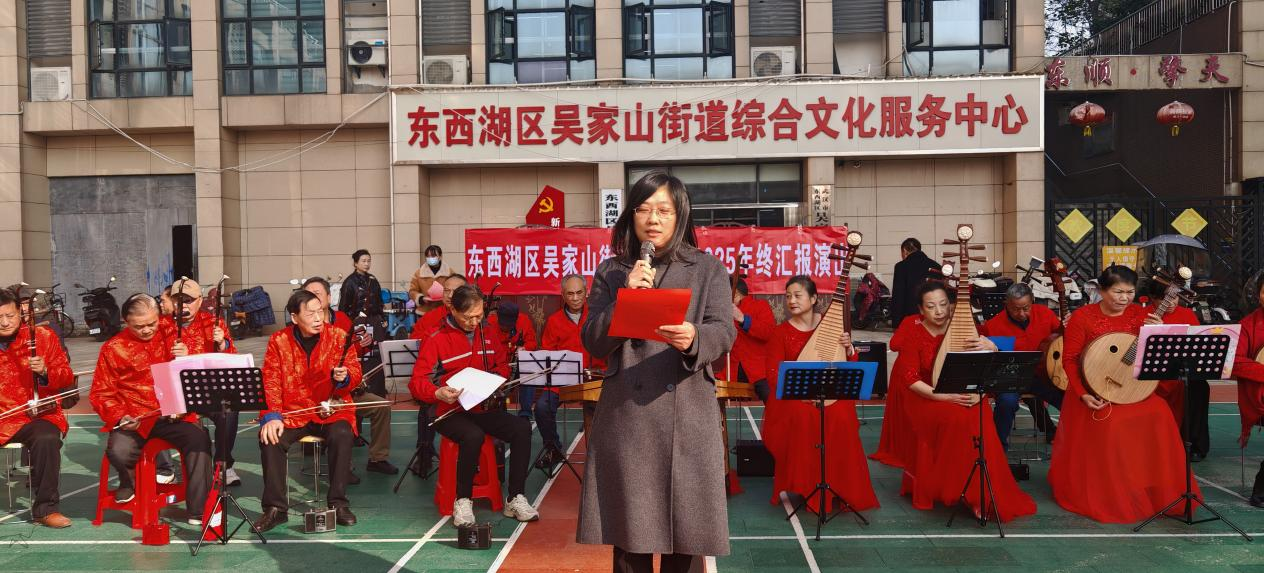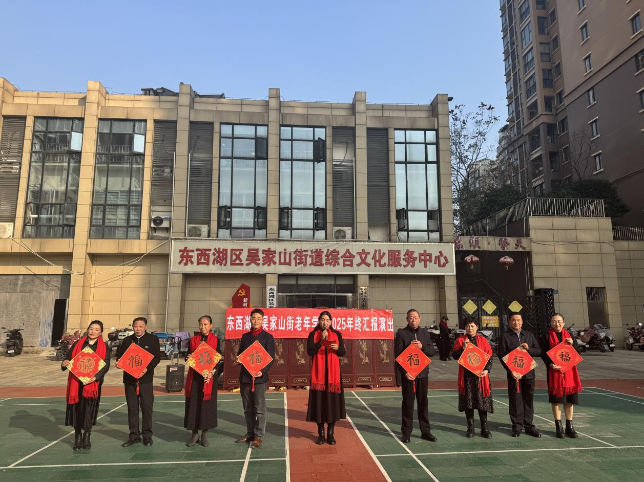 12月8日下午,吴家山街老年学校2025年期末汇报演出在学校门前广场隆重举行。学员们以饱满的热情和精湛的才艺,呈现了一场精彩纷呈的文化盛宴,充分展现了新时代老年人老有所学、老有所乐、老有所为的精神风貌。