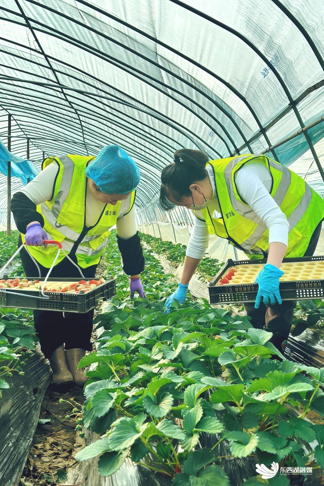 冬日时节,辛安渡街三合社区的武汉盛文农产品专业合作社内,却是一派繁忙景象。温室大棚里,饱满鲜红的“红颜”草莓垂挂在叶间,工人正弯腰采收,订单电话此起彼伏。